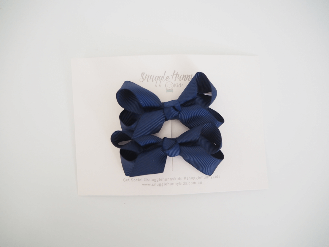 Hair Clip Bow - Navy Blue Small Piggy Pair