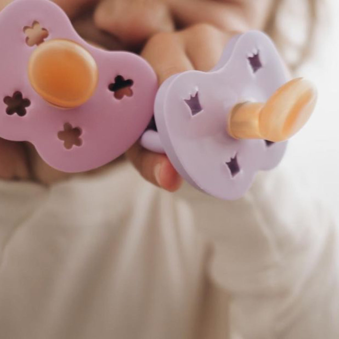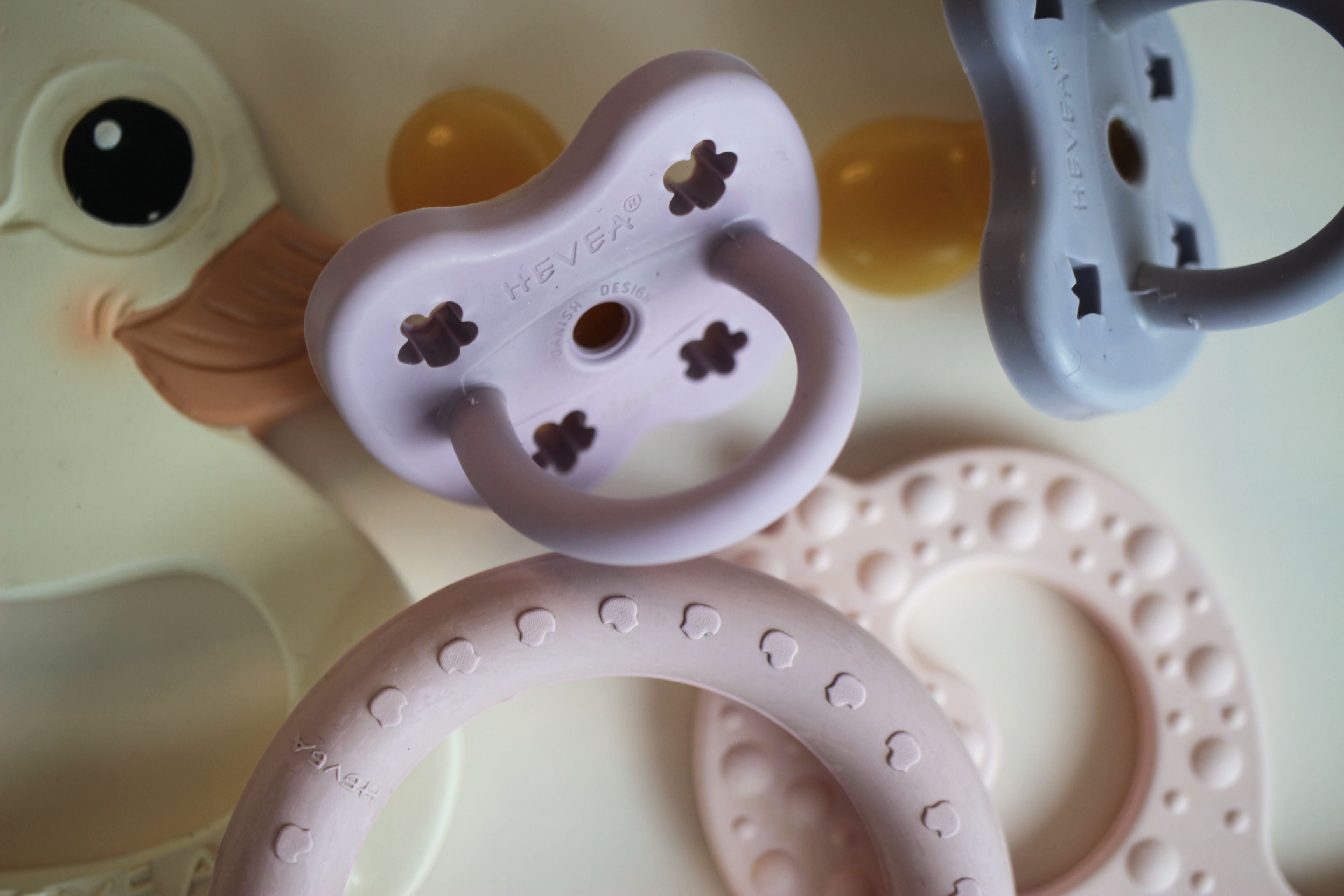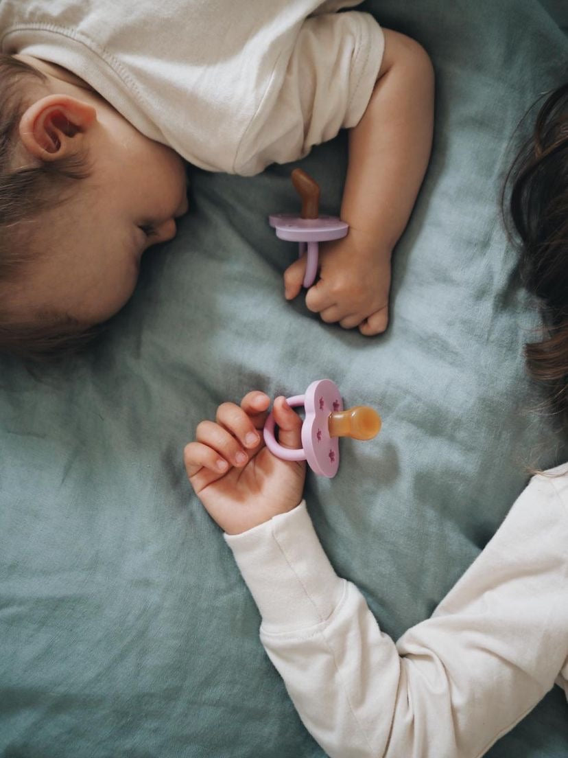 Meet the prettiest additions to HEVEA’s SS22 pacifier range: Dusty Violet & Light Orchid. Naturally delicate colours, beautifully fresh, and every bit as environmentally conscious as is expected from us at HEVEA. Our natural rubber pacifiers are family favourites and have been since we began making them. Soft enough to soothe, yet sturdy enough for the feistiest teether - A natural and safe option for little ones. Did we mention how pretty these two colours are?? The HEVEA Pacifier twin-packs have been designed for ease from day one of a new arrival, lowering the risk of losing these trusty steeds when you need them most – now there is always a back-up! A beautiful gift and a must-have top up.