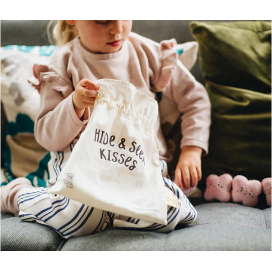 Perfect for imaginative children aged 1 - 6, our game contains TEN little 'kisses' inside a natural cotton bag to play Hide & Seek with.