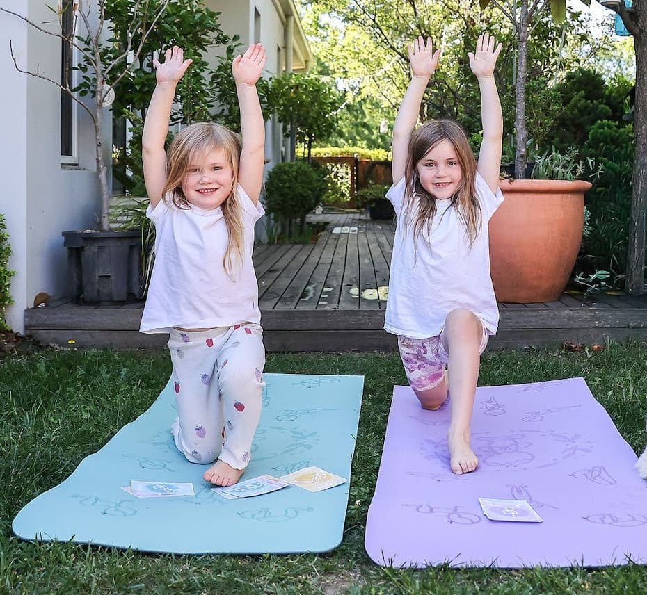 Yoga mats provide a base for a daily exercise ritual. The sun salutations printed on the mat allow the child to follow a routine through a visual prompt and find a preference for the order of the exercise and focus.