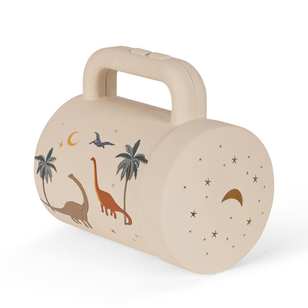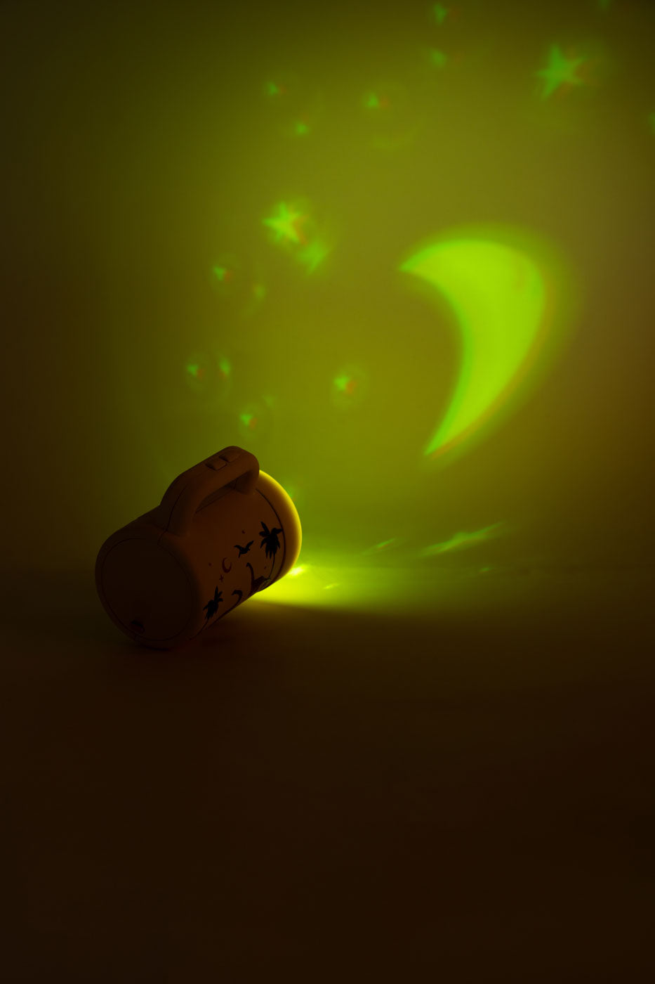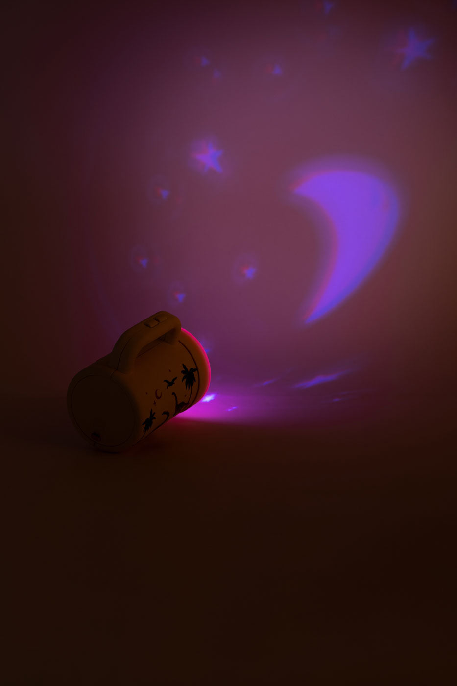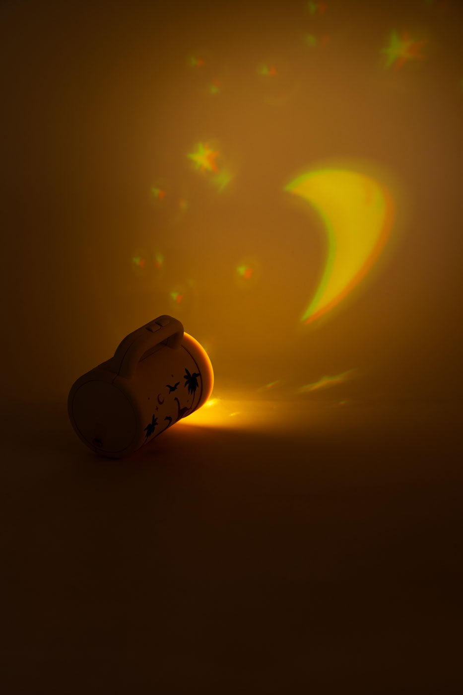 Magical flashlight with lights that change color. Features a separate lid with cut-out shapes: attach to the front of the flashlight and project onto the wall - exciting tales will unfold!