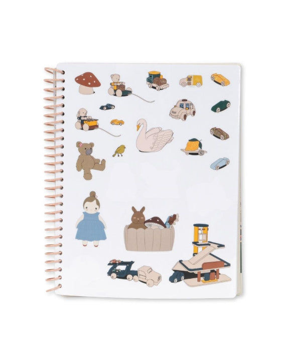 Fun sticker book with reusable stickers. Includes 6 different board pages with different worlds and universes. Create your own with the different stickers.