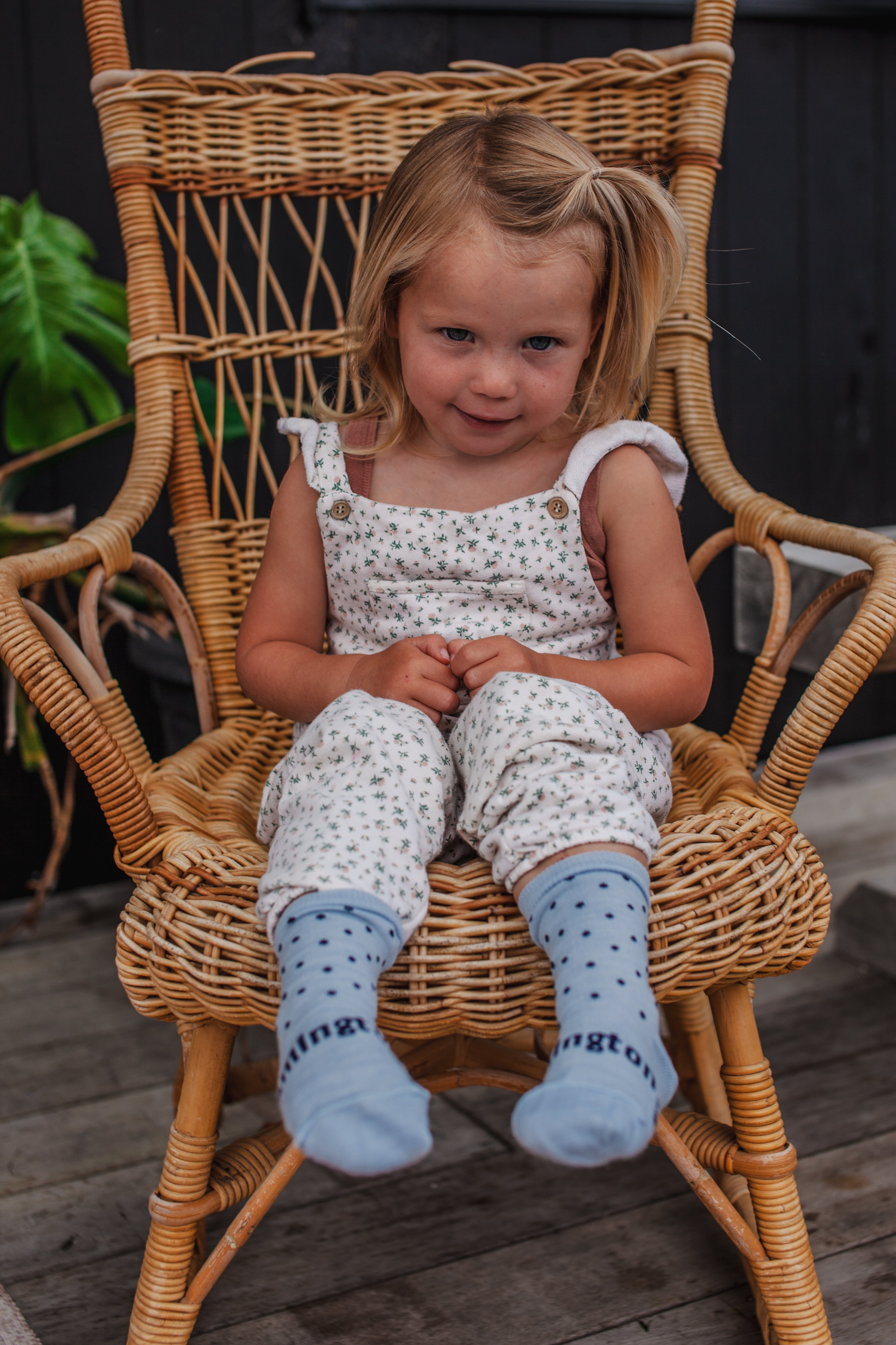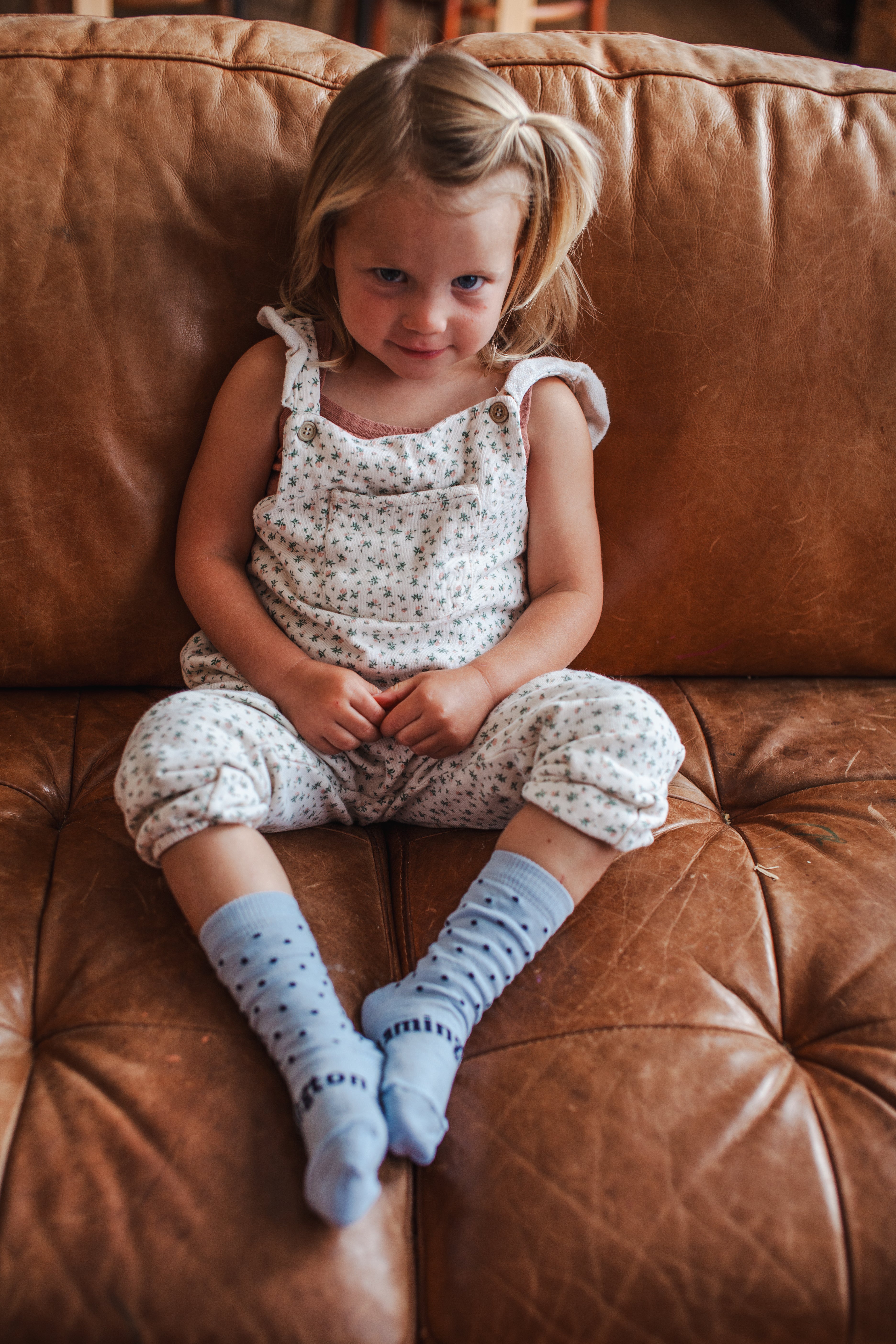 Cornflower - Light Blue with small dark blue spots merino wool crew socks for children.