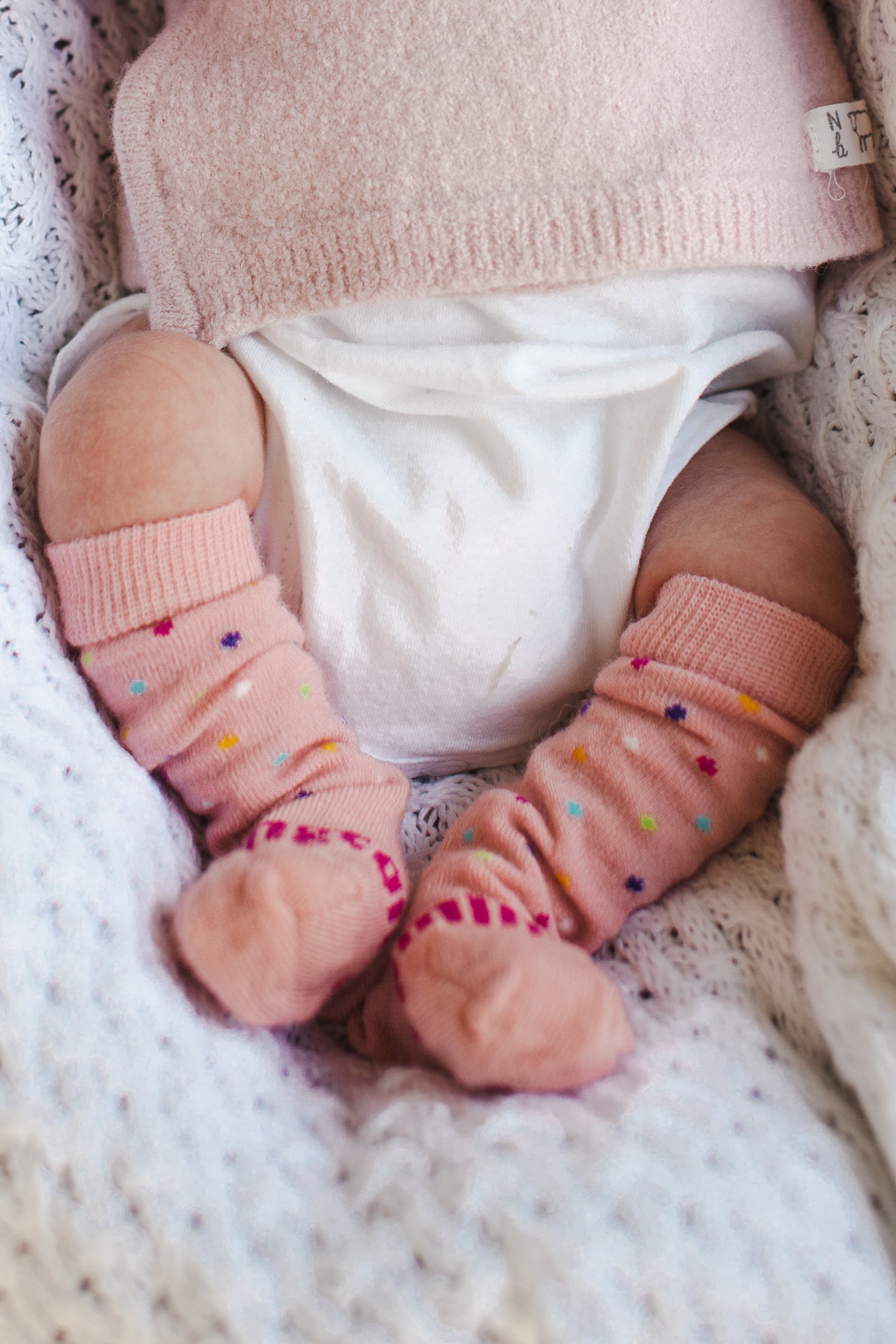 Babies come in all shapes and sizes. Our sizes are a guideline only and are not a one size fits all. To ensure your socks are not too tight on your infant always place a finger between your baby’s skin and the band of the sock to make sure the items are not restrictive. If you think they are too firm either scrunch the sock down, fold over the cuff, or go to the next size up. Alternatively use our Crew length socks which sit lower on the leg. Our knee high socks are designed to be worn below the knee.