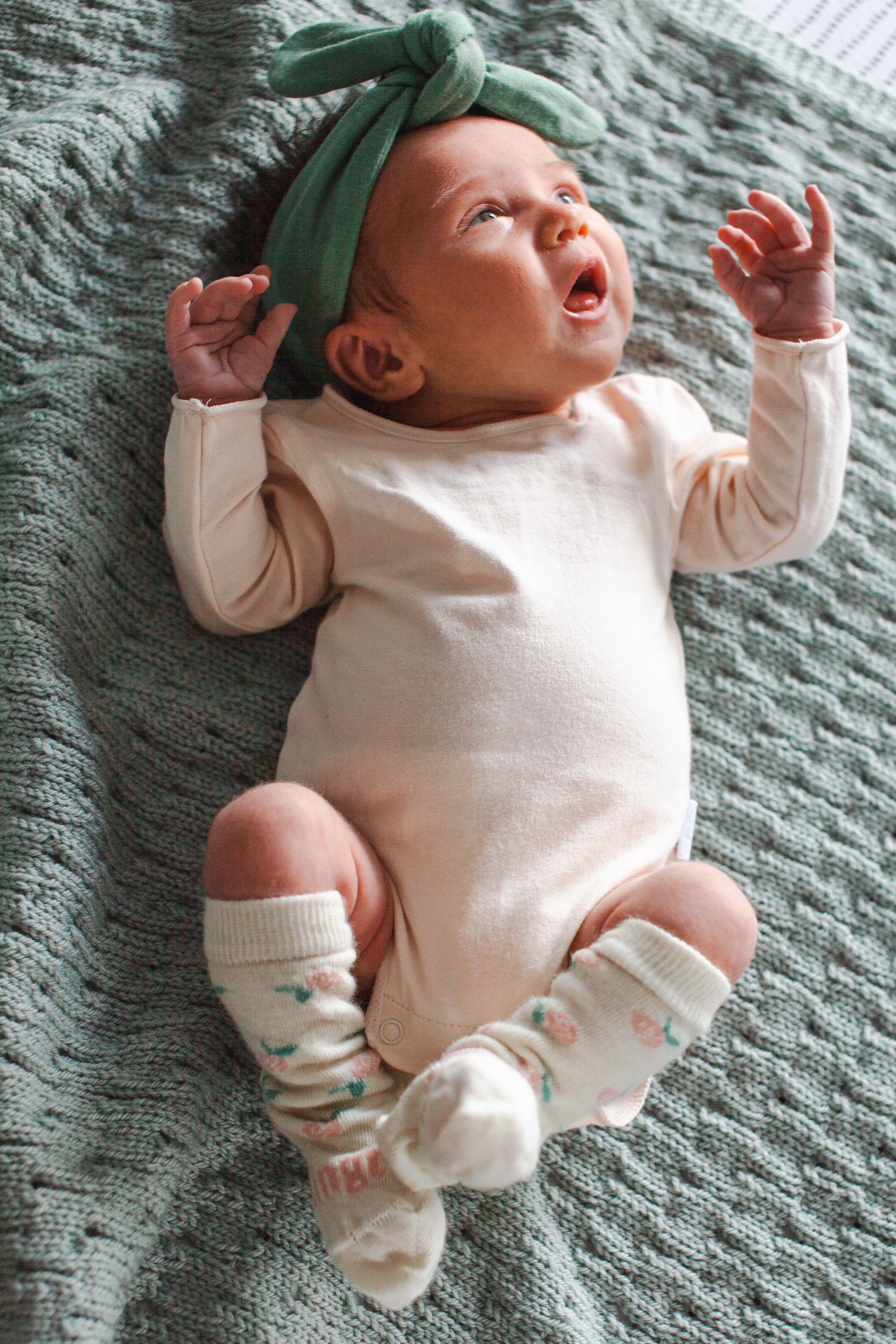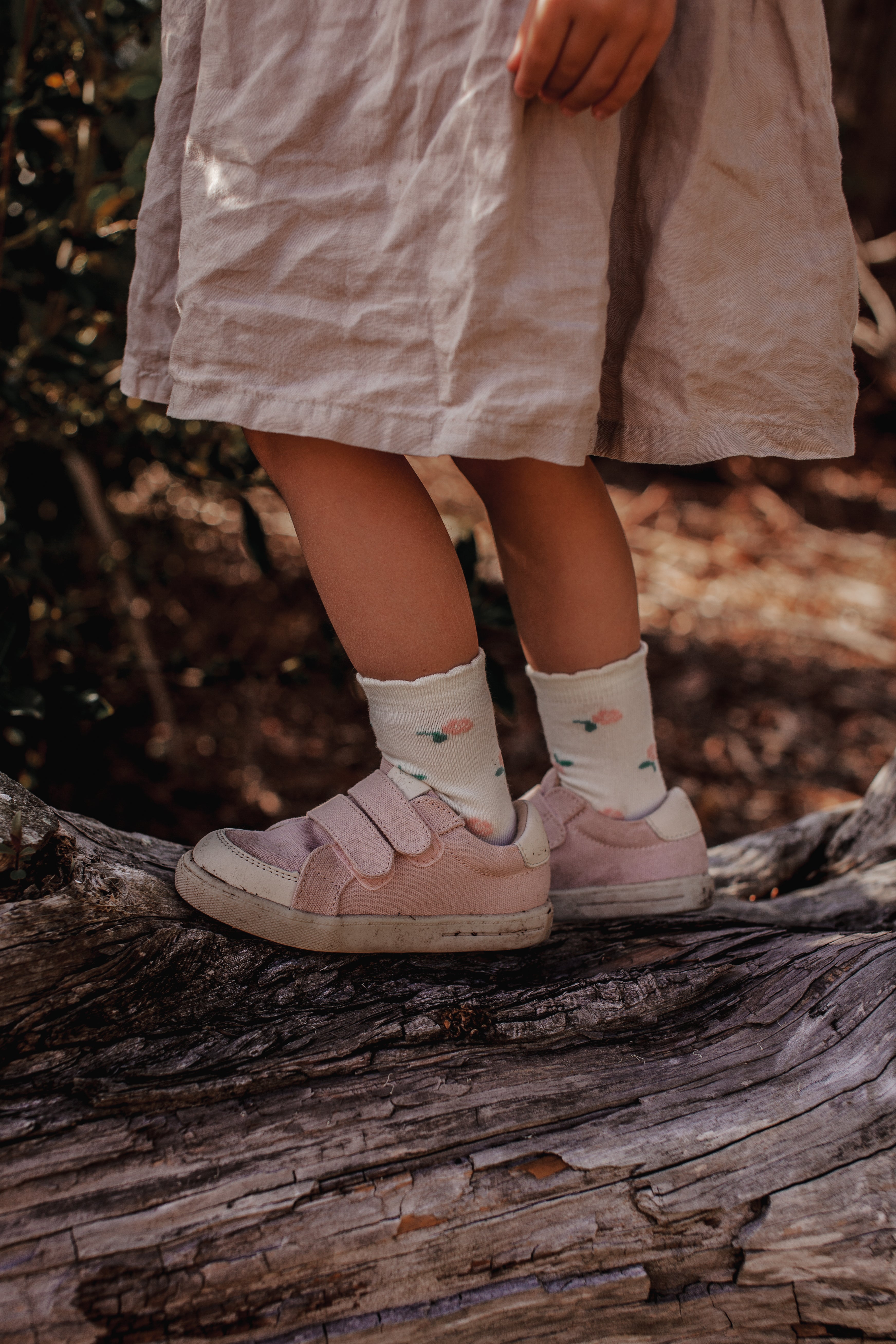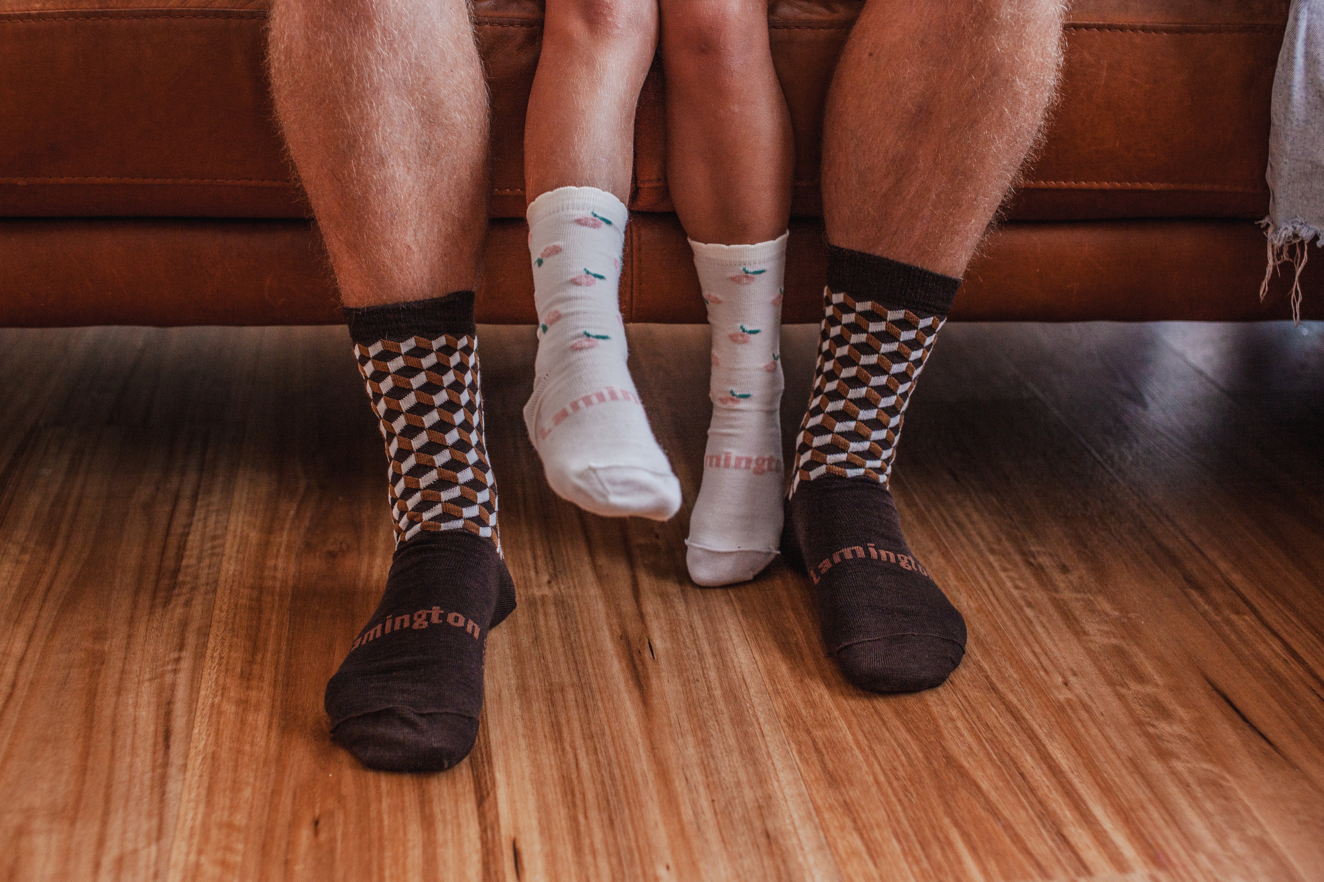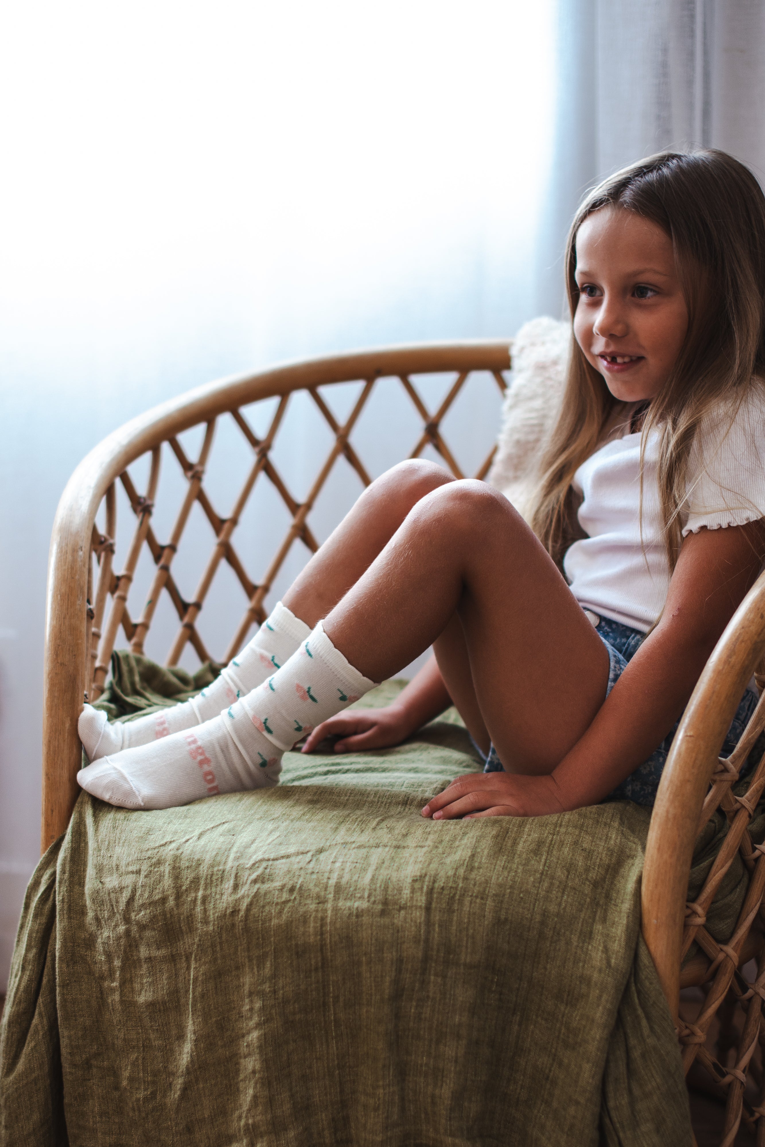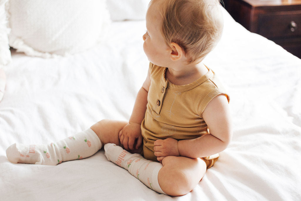 Babies come in all shapes and sizes. Our sizes are a guideline only and are not a one size fits all. To ensure your socks are not too tight on your infant always place a finger between your baby’s skin and the band of the sock to make sure the items are not restrictive. If you think they are too firm either scrunch the sock down, fold over the cuff, or go to the next size up. Alternatively use our Crew length socks which sit lower on the leg. Our knee high socks are designed to be worn below the knee.