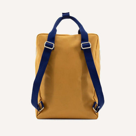 Yay! The special edition backpack is made from recycled PET bottles. On the front you find an extra pocket. The lining is waterproof. The zippers are from YKK and the shoulder handles are adjustable. On the inside you'll find an elastic bottle holder and a pocket all over the back that closes with velcro. On the name tag you can write down your name and contact details. The inside has a lemon pattern.