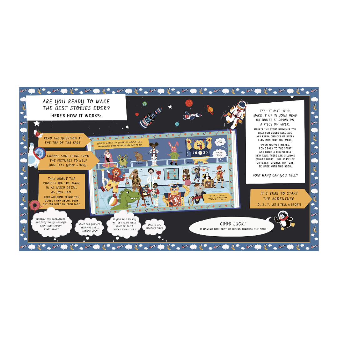 Once they've finished, the reader can turn back to the start and make different choices to tell a completely new tale. There are millions of possible combinations and endless stories to be told! And can you find the cheeky penguin hidden on each page?