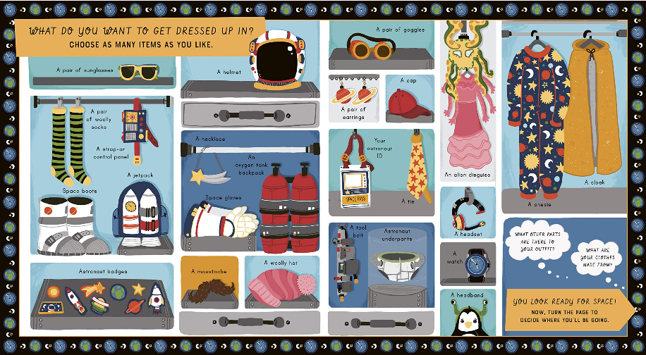A choose-your-own-story book for readers aged 5+. Look at each page and choose things that will help you tell a story. Packed full of colourful characters and imaginative situations, this fun book will put kids in charge of their very own space-themed adventure.