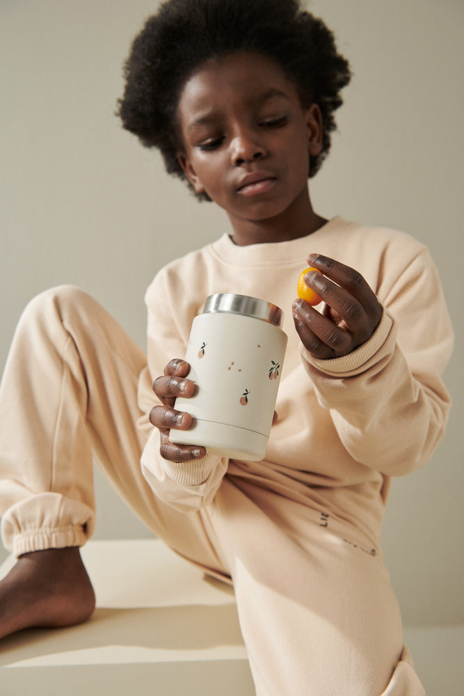 Our food jar has double wall stainless steel and is super practical and perfect for bringing porridge or little snacks on a day out. It serves a highly functional purpose as it can store hot items up to 6 hours and cold items up to 8 hours. The food jar will be delivered in a beautiful box.