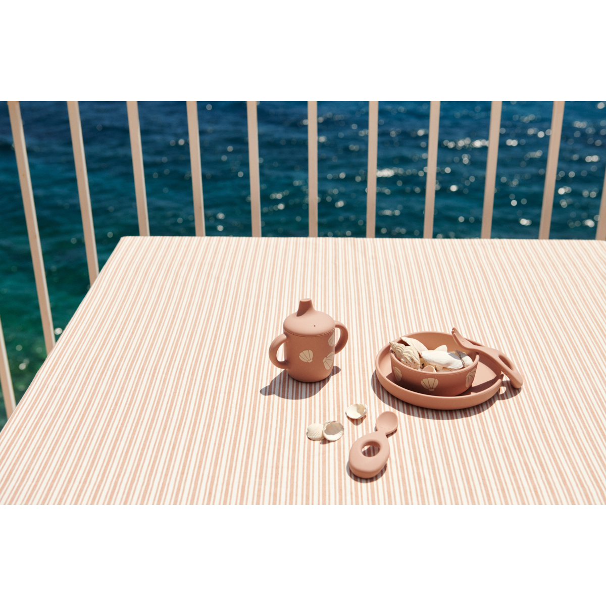 Make mealtime fun and fuss-free with the baby-friendly Ryle tableware set. A combination of durable mealtime staples, the set includes the Liva fork, Liva spoon, Neil cup, Iggy bowl, and Olivia plate, all adorned with unique LIEWOOD prints. Crafted from soft and safe silicone, these tableware pieces are noiseless and dishwasher safe.