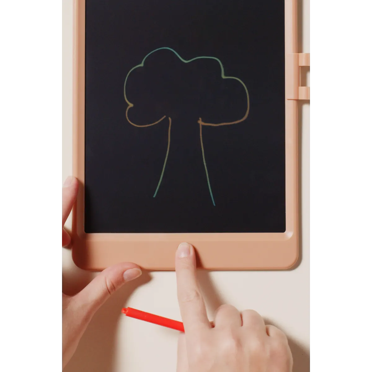 Let your child unleash their creativity wherever they are with the lightweight and portable Zora drawing tablet. The tablet's surface creates lines of different thickness based on how hard you push, and the image can both be saved or erased as wished with the touch of a button. Create again and again, without the need to charge.