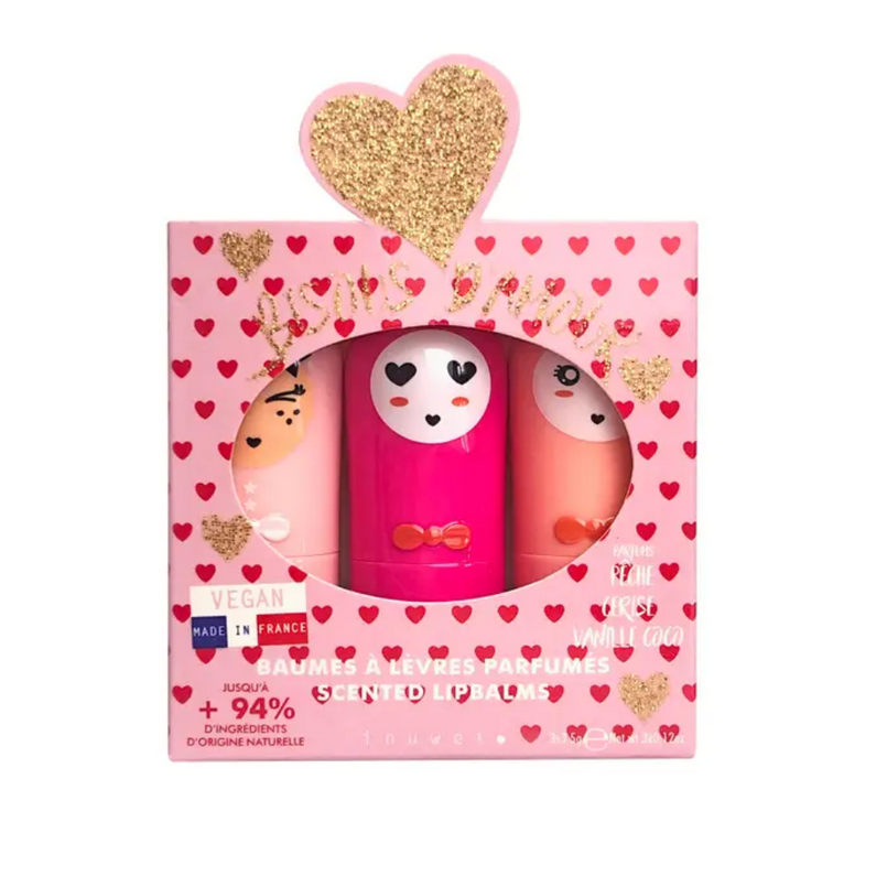 This trio is the softness order par excellence, it acts as a blanket: vanilla-coconut, apple, strawberry = well-being and comfort guaranteed. Enriched with shea butter and macadamia oil, these balms effectively nourish, repair and protect the lips. The icing on the rabbit: the formula is vegan, cruelty free, without parabens or allergens.