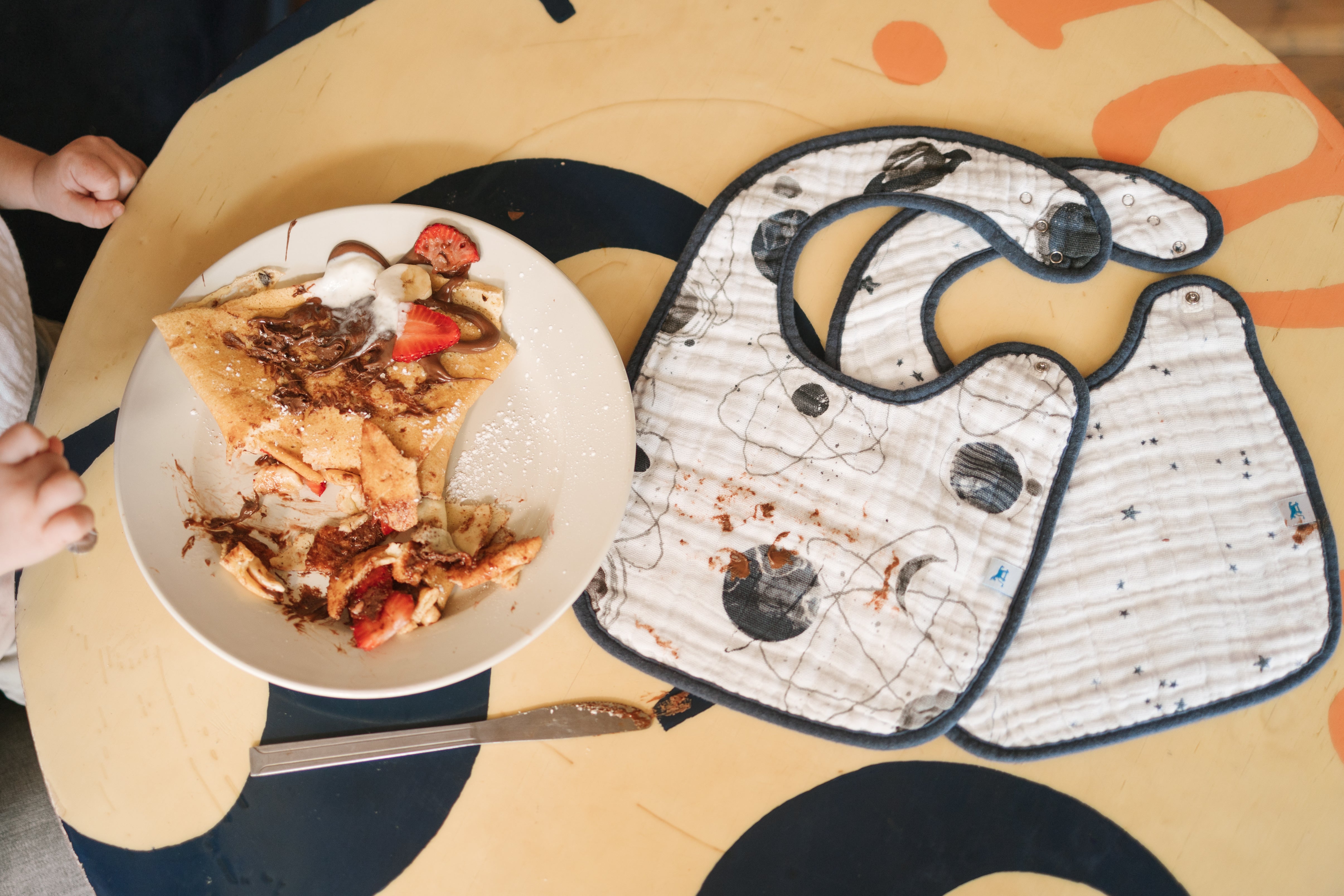 Soft and absorbent, our multi-layer bibs are built to handle all of baby's spills and messes. Featuring three unique, hand-painted prints and a snap-on function to ensure a snug fit that grows with your baby.