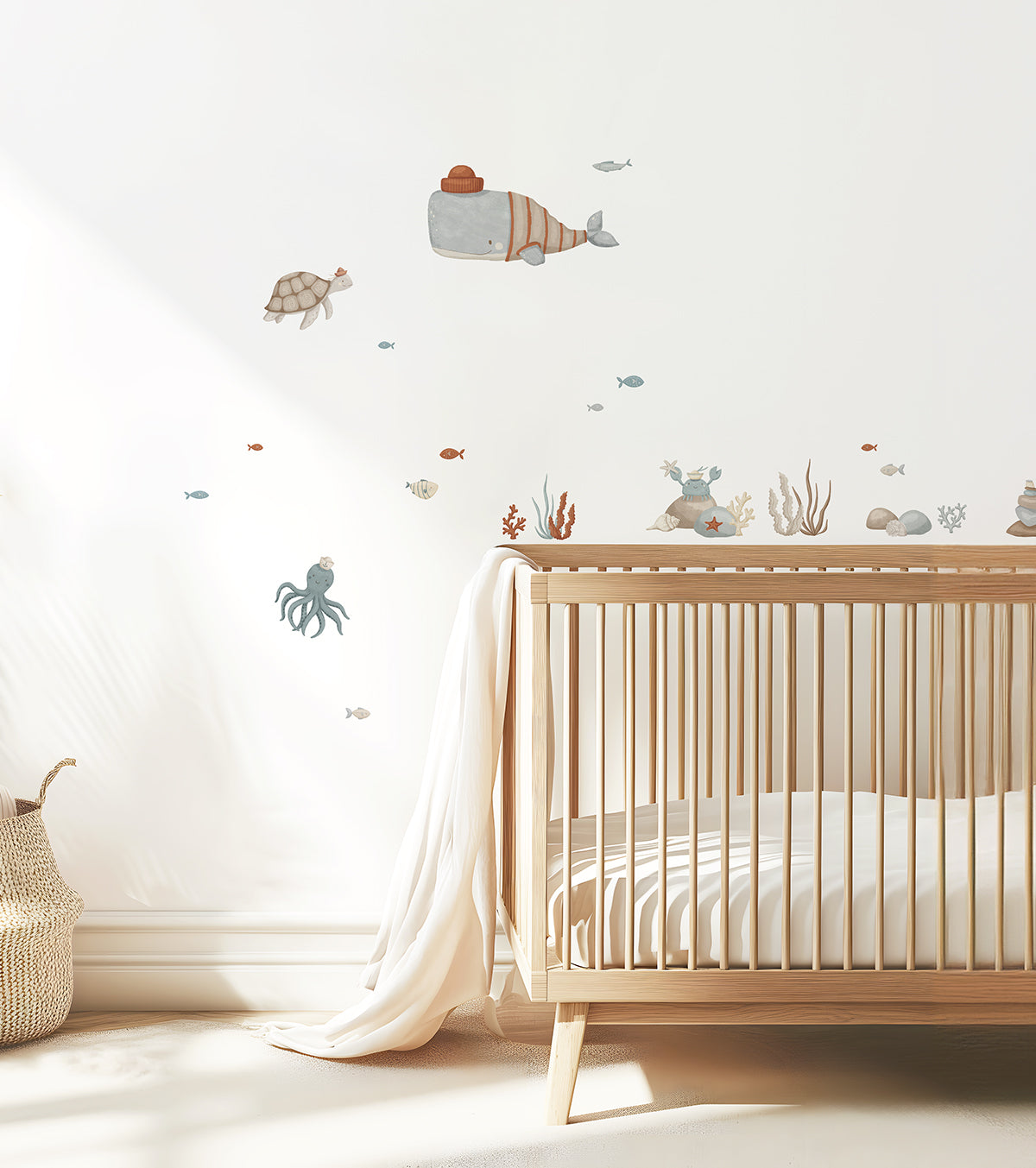Dive into the enchanting depths of “Lotán” – a whimsically styled nursery theme that brings the serene undersea world right into your little one’s bedroom.