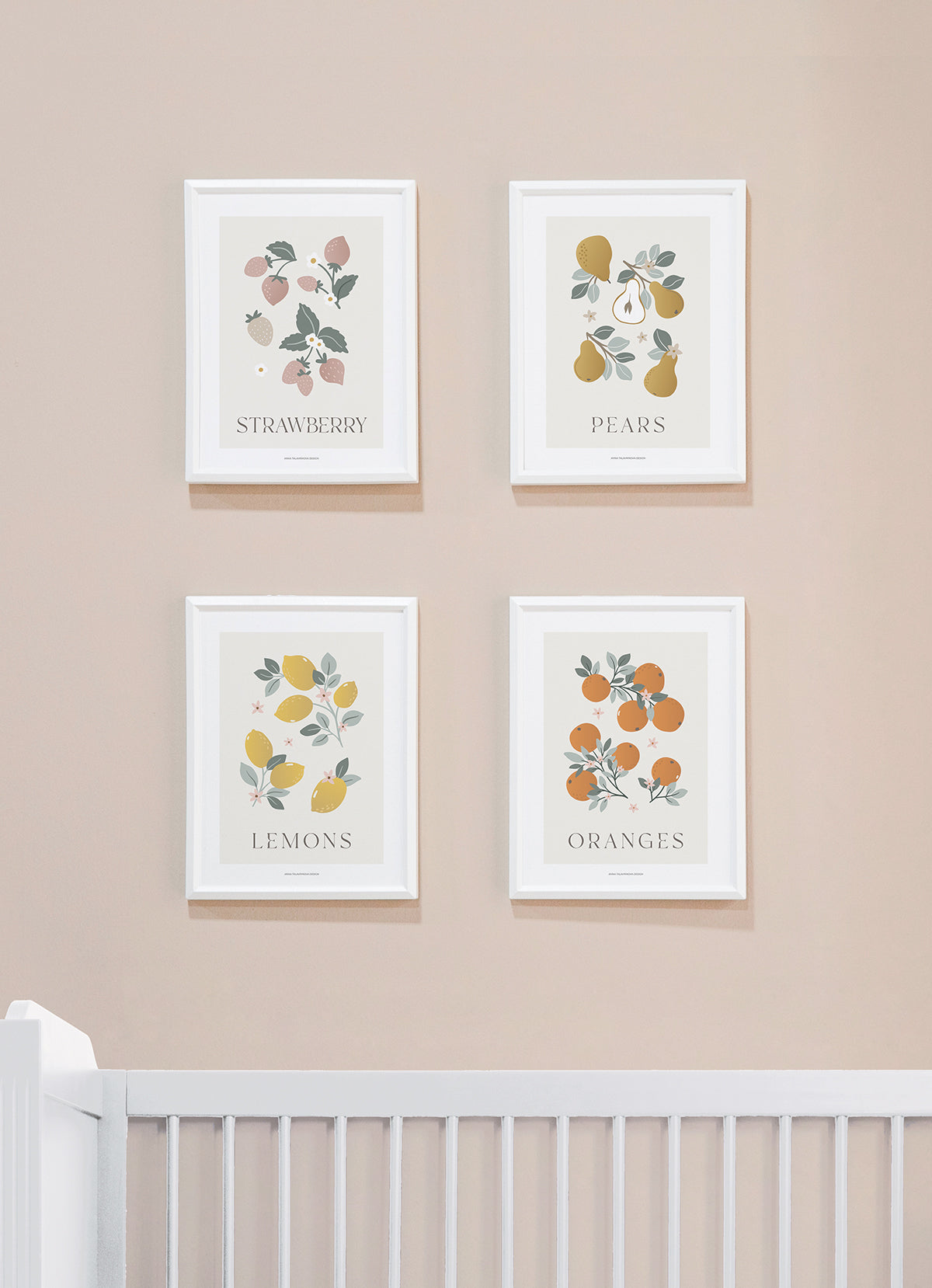 Sunny and smooth colours. Beautiful drawings of colourful fruits. Everything is perfect to brighten up a child's room and turn it into a little garden of paradise.