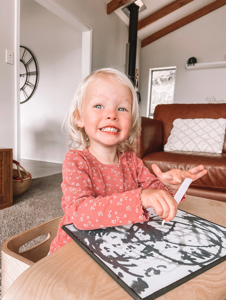 Your little artist can create their masterpieces in any way they’d like, whether that be with a paintbrush, their hands or a sponge. Paired with our new water pens, this activity is truly travel-ready, as the pens store water inside. The ultimate in mess-free creativity.