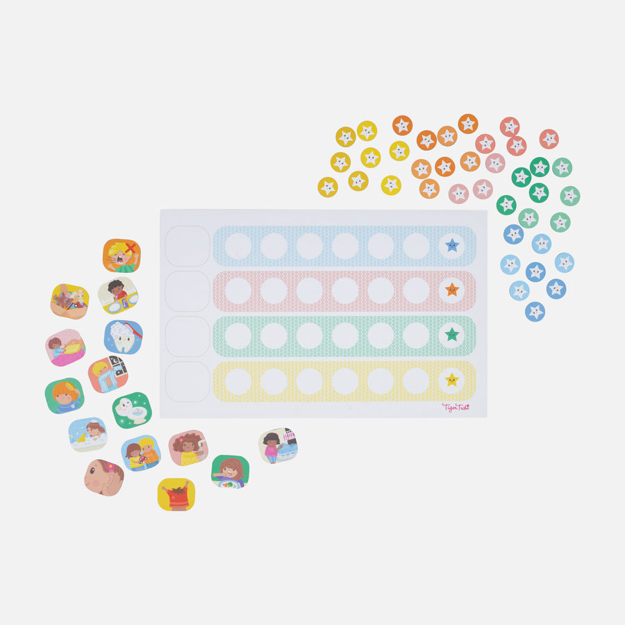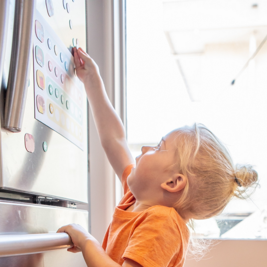 The chart can be customised for tracking household tasks like unpacking the dishwasher and cleaning teeth or rewarding positive behaviours including sharing and listening. The chart is also magnetised so can be easily used on fridges and white boards.
