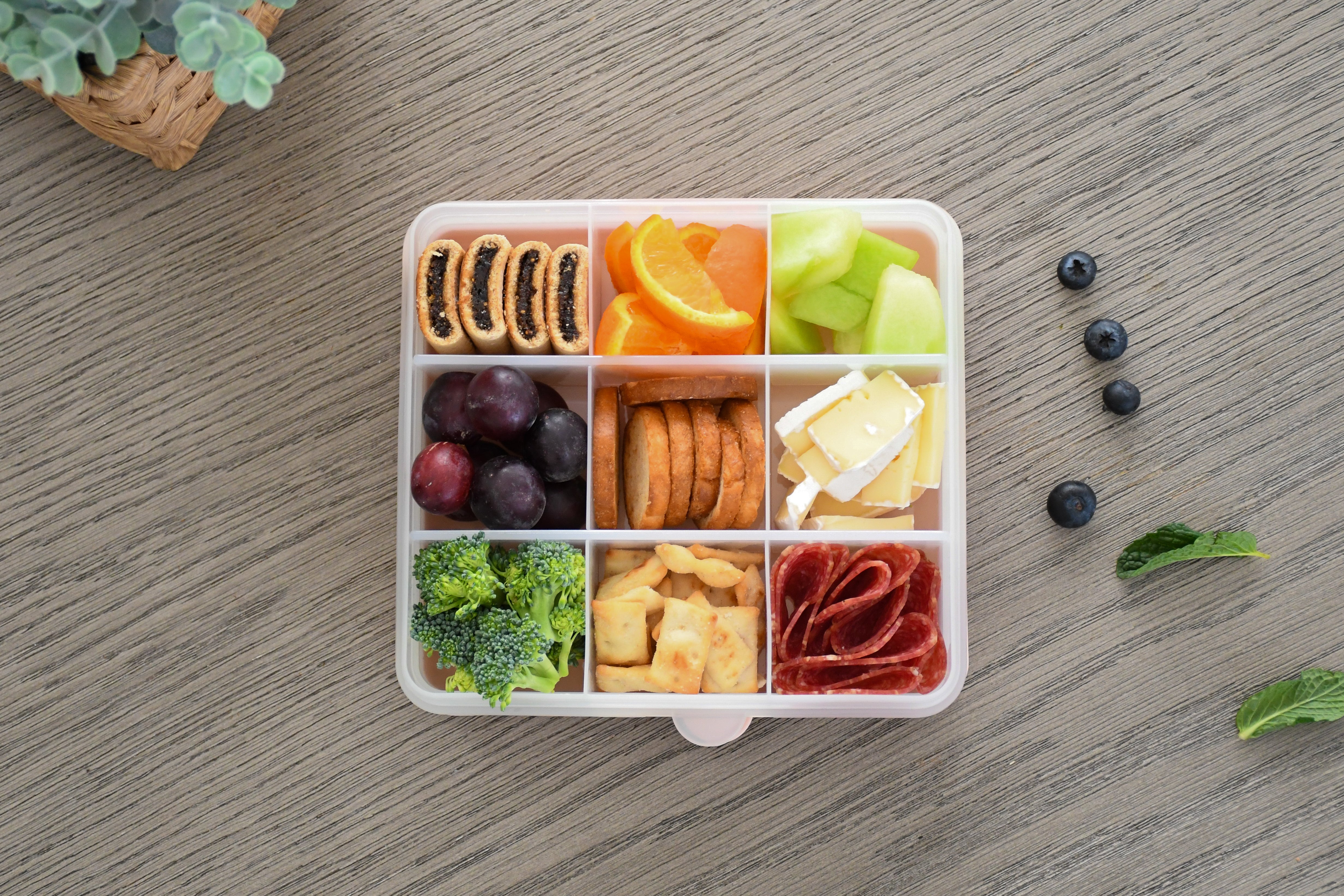 - Removable dividers for versatile snack sizes