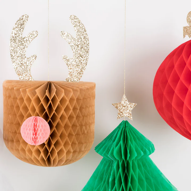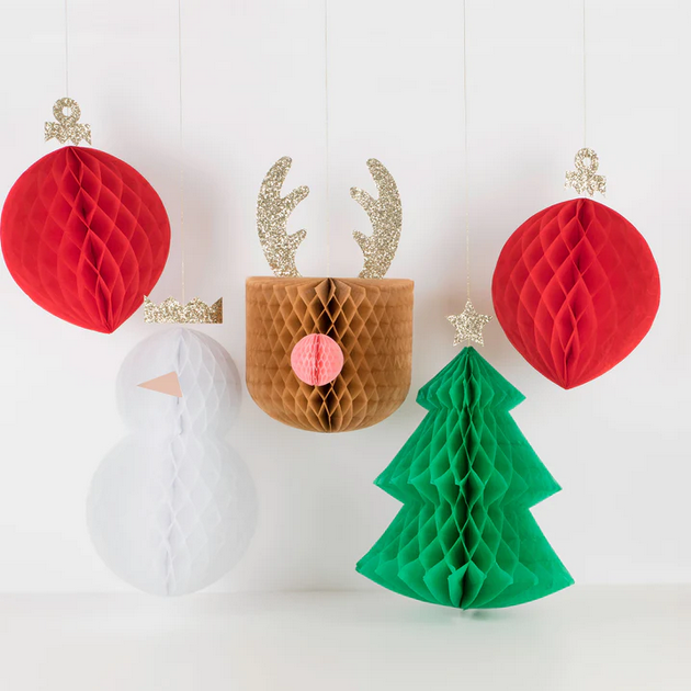 Meri Meri Christmas | Large Hanging Honeycomb Decorations (x 5)