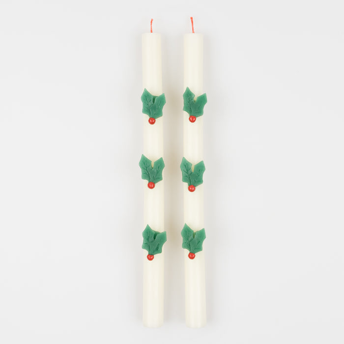 If you're going for classic Christmas decorations, or you simply want traditional touches here and there, our merry and bright holly candles are perfect for you. They're tall and elegant, with special embellishments including wax holly details and colored wicks. They're ideal to place on your dinner table or mantel for a soft glow (and, if you don't light them, you can use them as decorations year after year). They make a fabulous gift for someone who loves candles, or as a host gift.