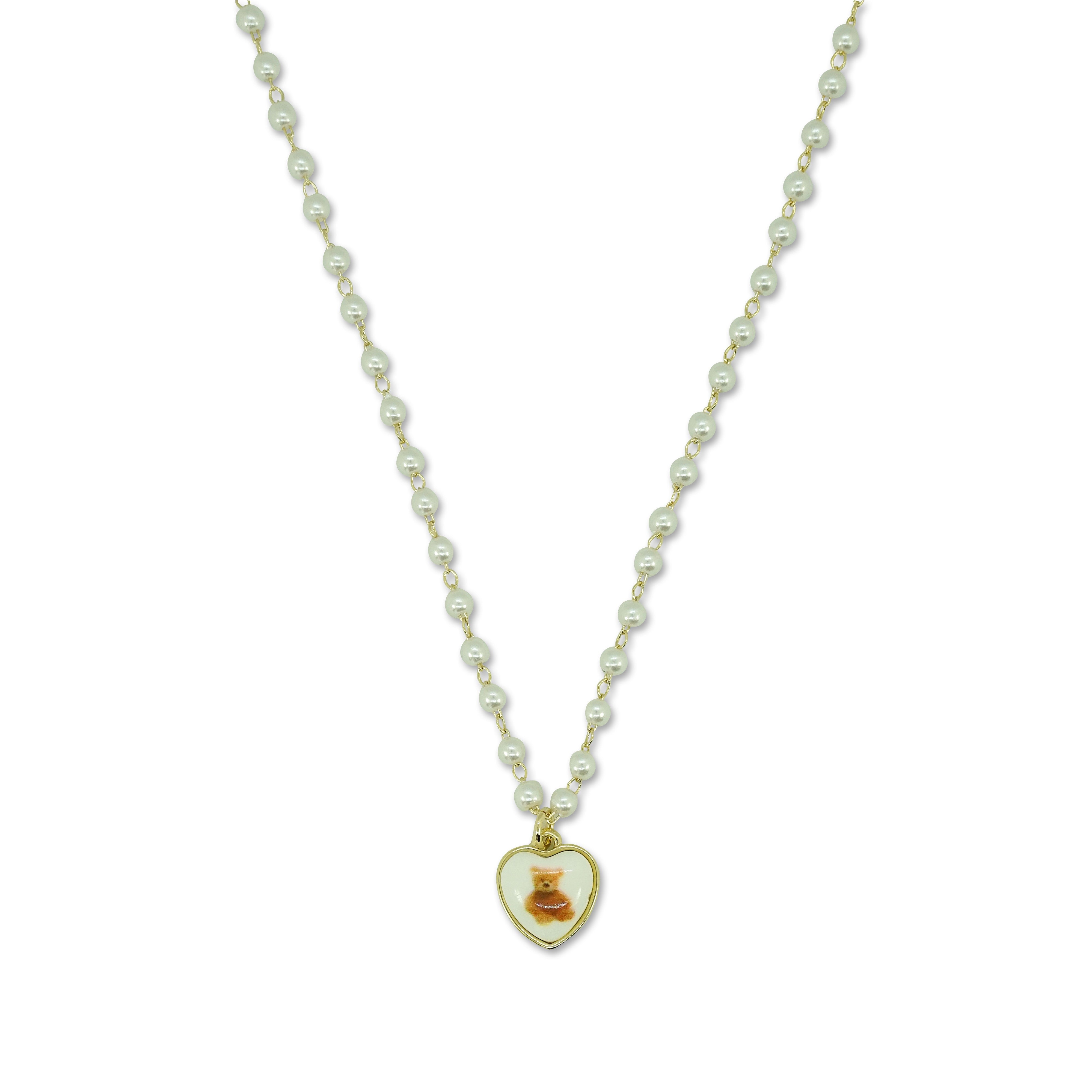 Add some quirk to your outfit with this Milk x Soda Necklace. This playful bear pearl necklace is the perfect accessory for expressing your unique sense of style. Get ready to turn heads and have some fun!