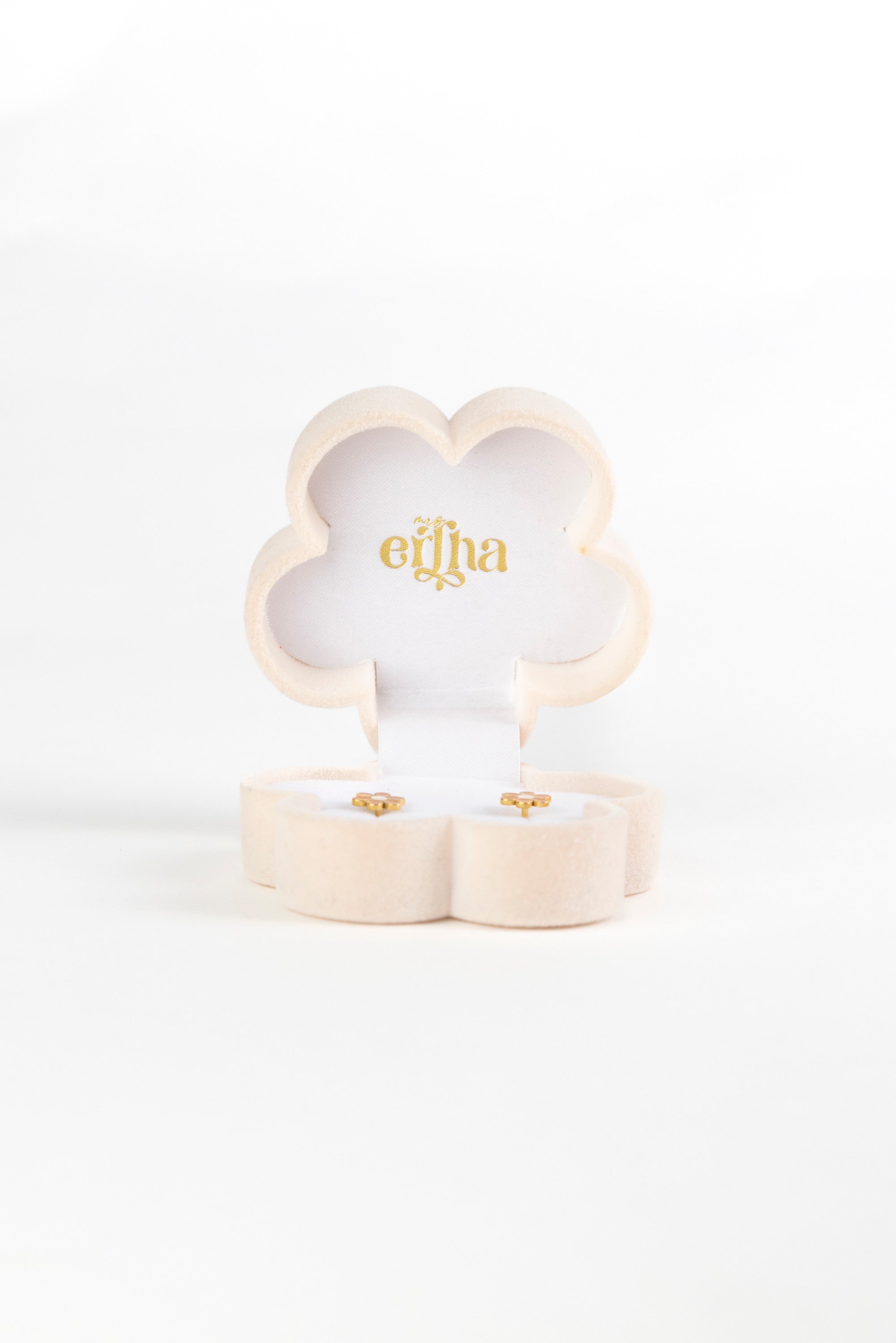 Crafted in soft neutral tones and finished with our gold-stamped logo, it blends the lightness of nature with the refined care of our brand. Perfect for special gifts or to elevate the unboxing experience of your jewelry.