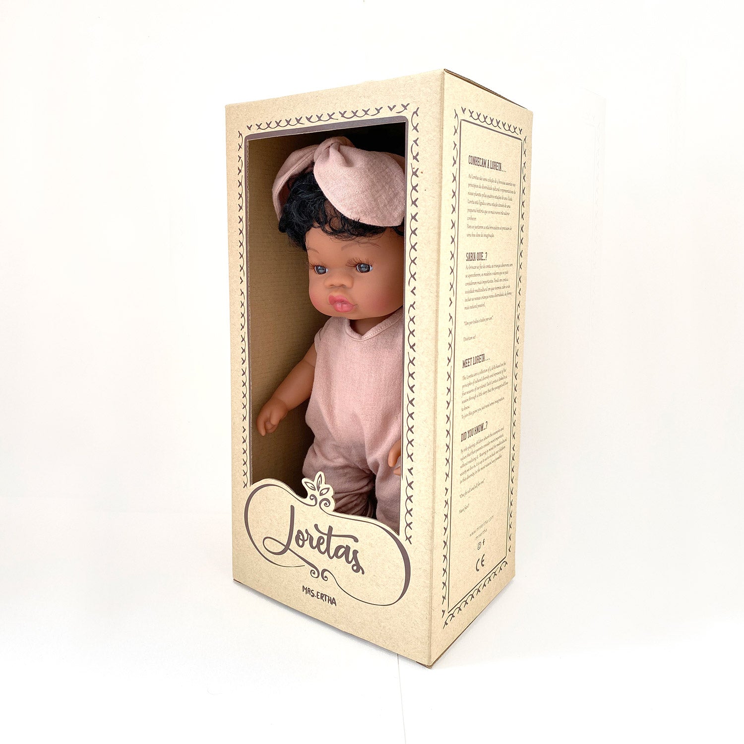 The Loretas are a collection of 4 dolls based on the principles of cultural diversity and representative of our planet for the four seasons of the year. Each Loreta is linked to a station through a little story that the youngest will love to know. Each Loreta includes an underwear set, a headband, a jumpsuit and a pair of shoes handmade in Portugal in 100% Cotton Gauze fabric. The extra strong packaging is made from recycled cardboard.