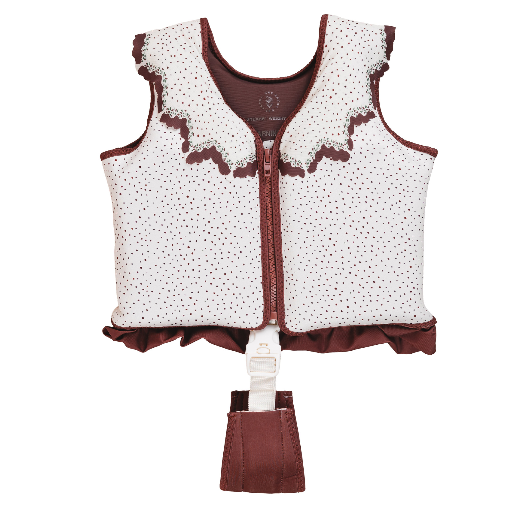 The new Puddlies by Mrs. Ertha are fun and modern floating vests for children aged 3 to 6. The vests have a zip fastening with a safety clasp and an adjustable safety buckle that prevents the child from slipping if they jump into the water or are floating.