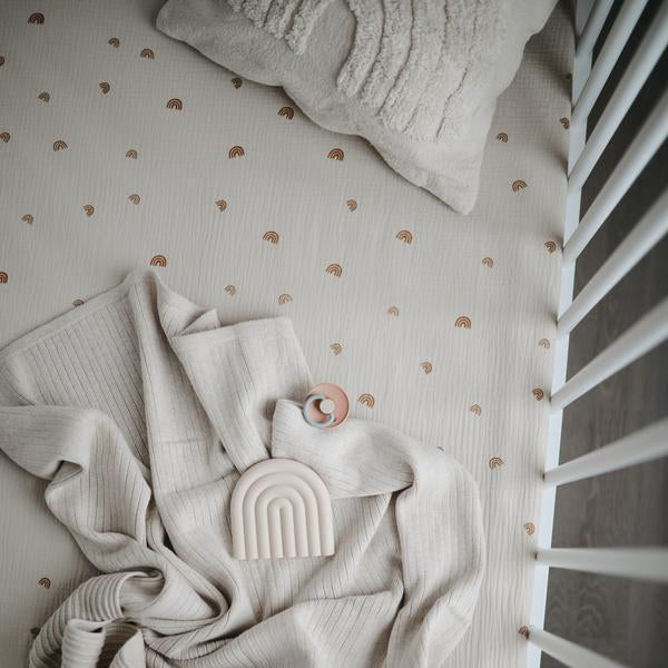 Nap time just got so much more cozy with the Mushie muslin baby swaddle - ideal for swaddling, nursing, and cuddling your baby.