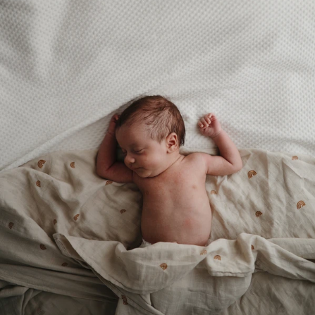 Made from 100% organic cotton, our extra soft muslin swaddle is pre-washed for softness against baby’s delicate skin. Muslin stays breathable while keeping baby warm and cuddly.