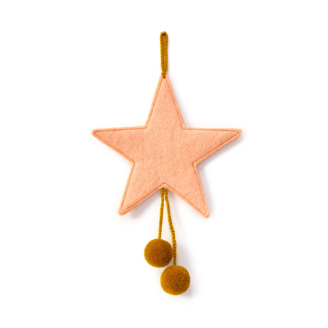 The woollen felt POMPOMS STAR from MUSKHANE is a decorative accessory that will embellish your home with elegance. Offering a star to someone, even to yourself, is a kindness. Being in the presence of a star, that’s quite something! Hung on a wall, a door, or a doorknob, suspended above a baby’s cot, or even from the ceiling with a transparent wire, you’ll find a place for it.