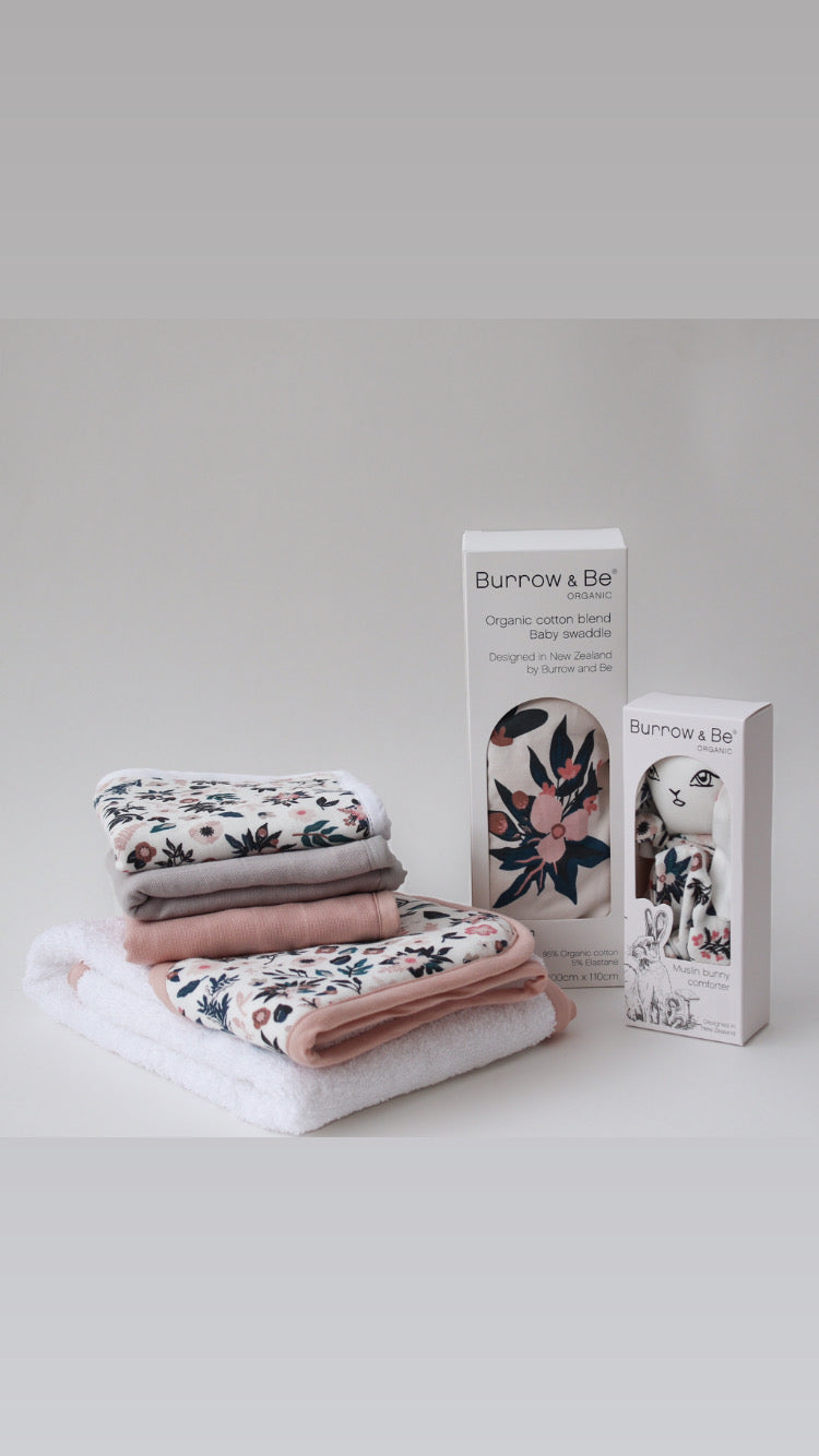 Our new Petit Clementine print features bold garden blooms that will stand the test of time, on a crisp white colourway. Paired with a matching muslin wrap, you will have a great baby shower or newborn gift ready to go.