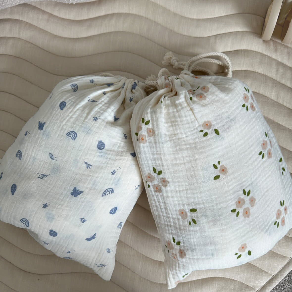 Made from organic muslin, with a polyester inner, and a little bell inside.