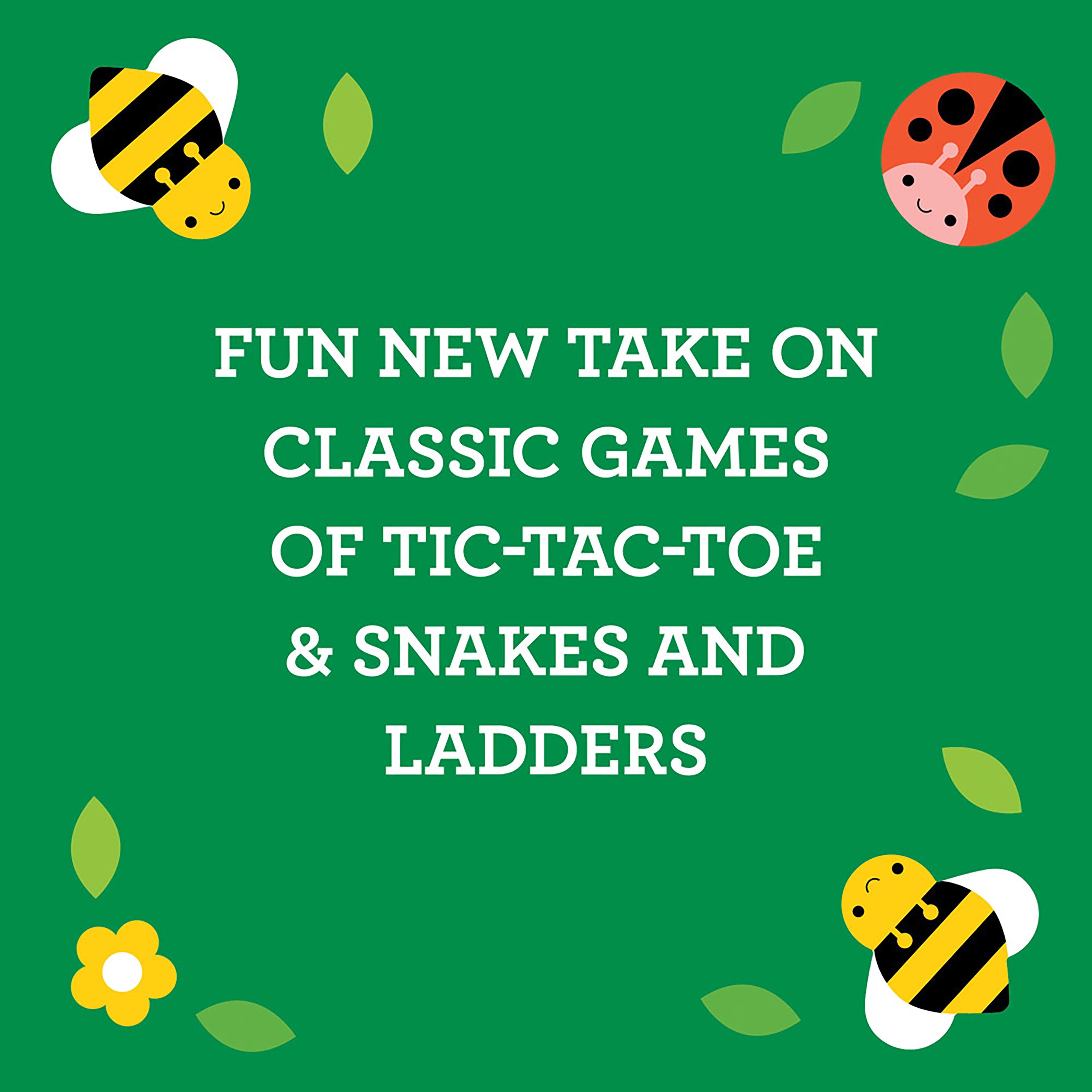 Get immersed in nature with two all-time favourite games! Players move bees and bugs across the grids printed on a handy travel bag in this fun and colourful take on the classic games of Tic-Tac-Toe and Snakes and Ladders.