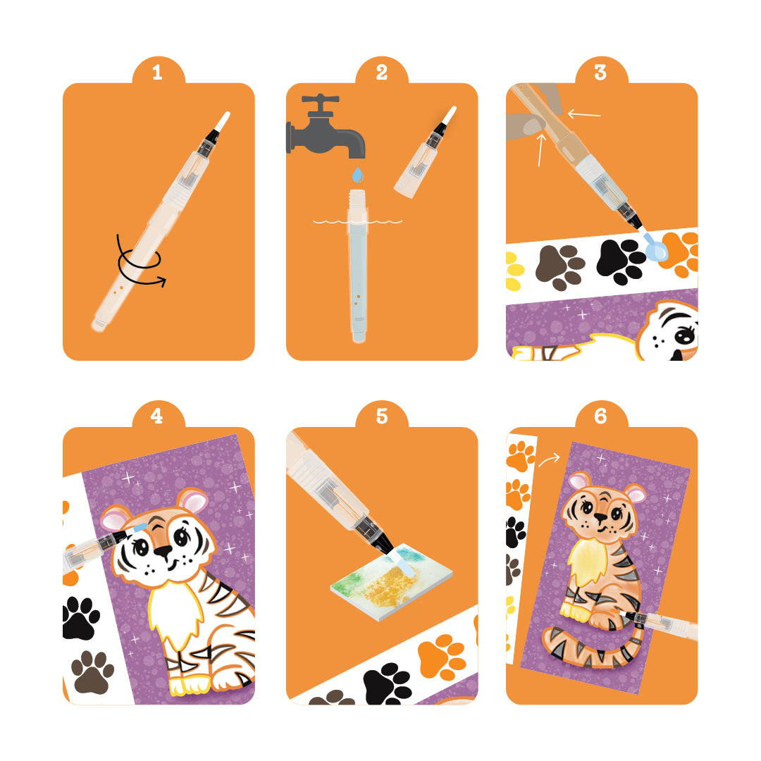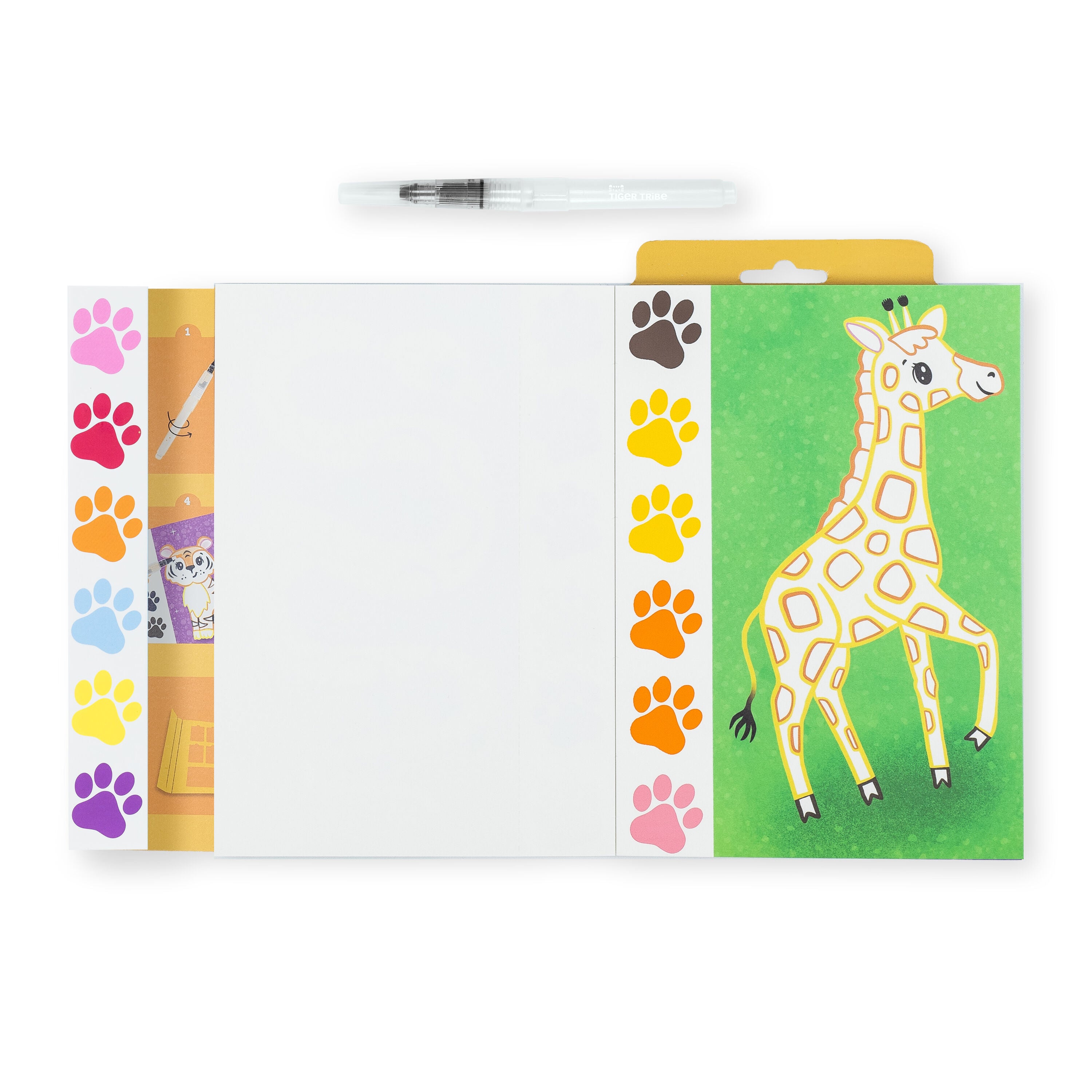 A wonderful intro to painting for little artists, this unique Paint-a-Picture set features 16x pages of amazing wild animals. Each illustrated design card has its own built-in watercolour paint palette, with six vibrant colours activated by the water brush. The pull-out, high quality watercolour card is perfect for displaying and preserving masterpieces. Magnetic closure on the set allows for neat pack-up at the end of the day.