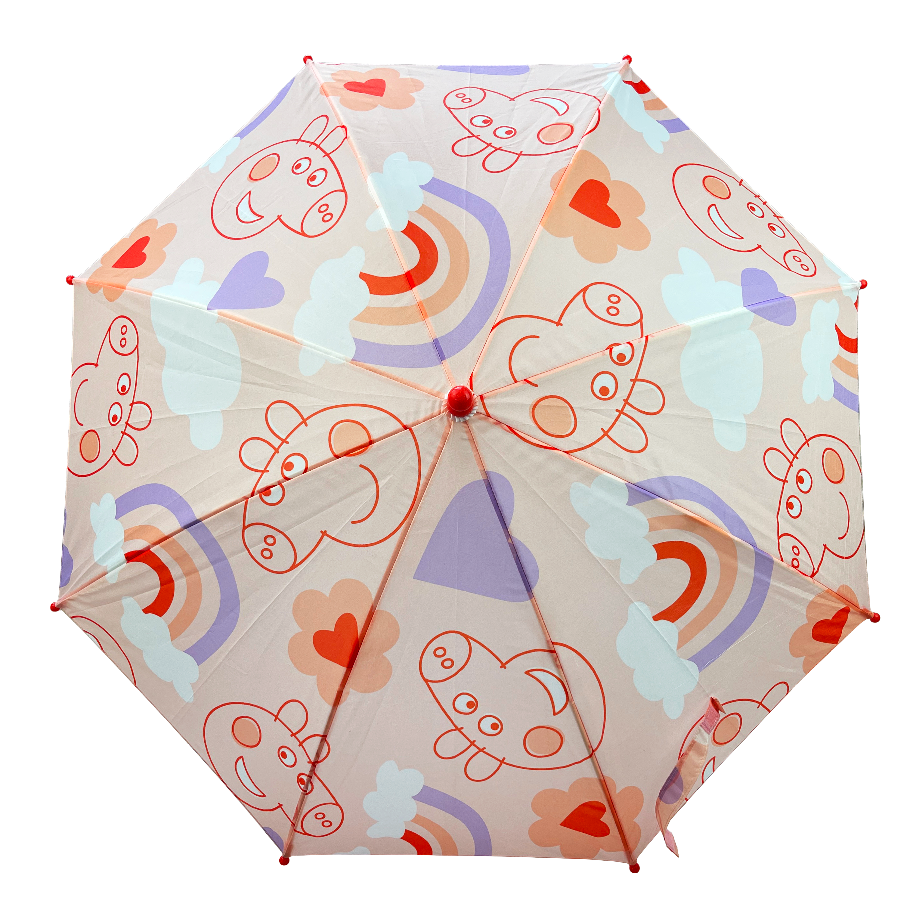 Stay dry and stylish with the Peppa Pig Umbrella in a playful lilac red rainbow design. Perfect for kids who love Peppa Pig, this umbrella will make rainy days just a little bit brighter. Don't let the rain get you down, let Peppa Pig brighten your day!