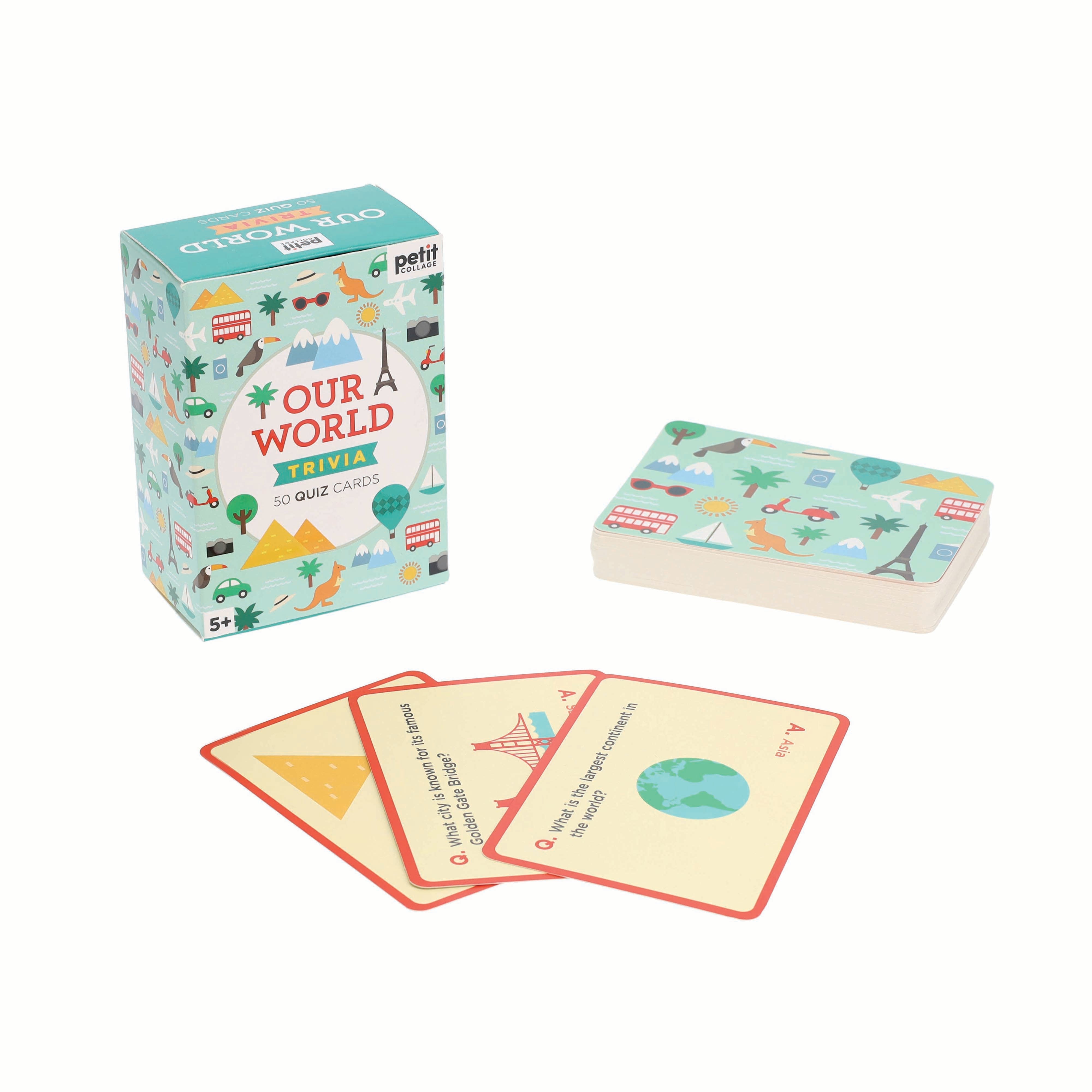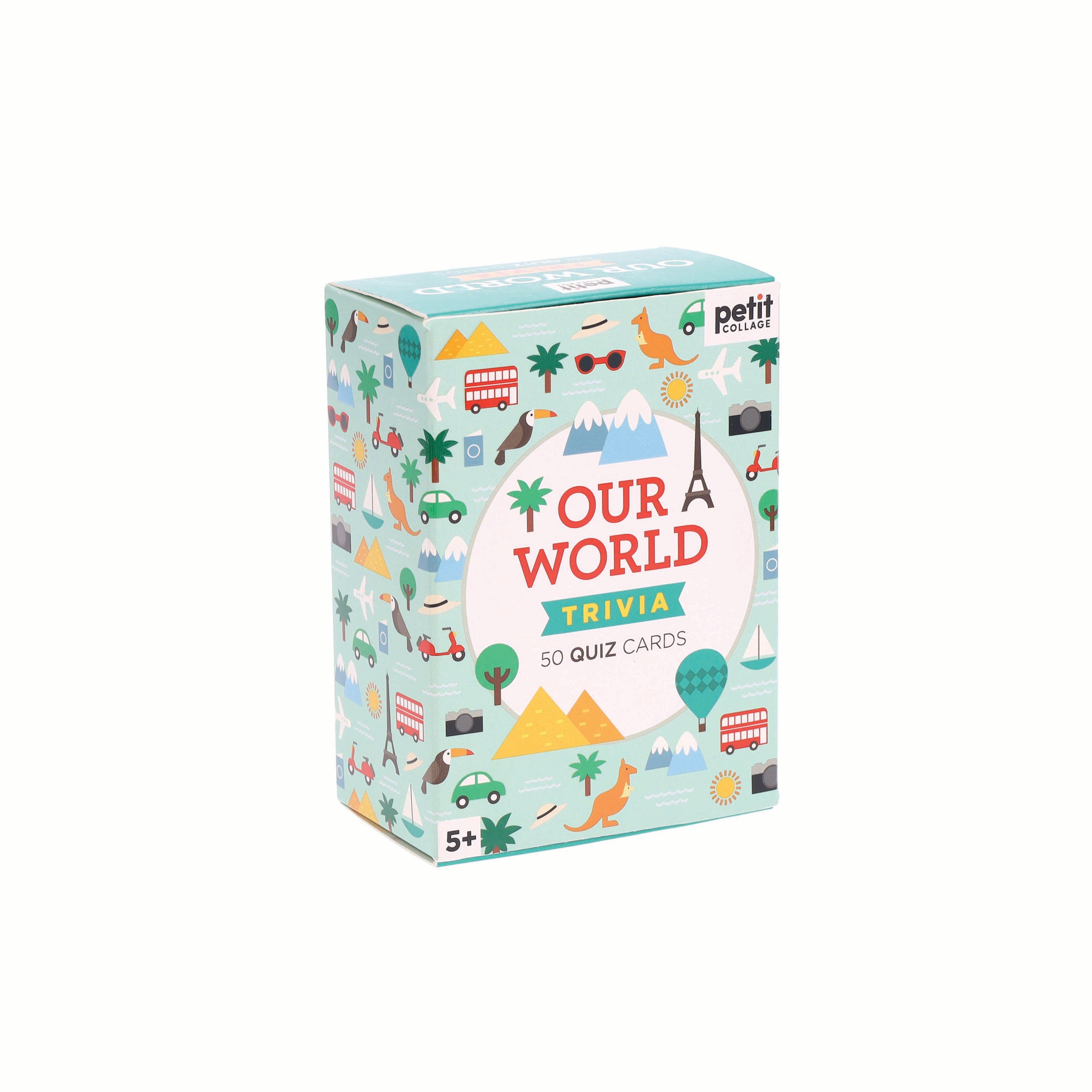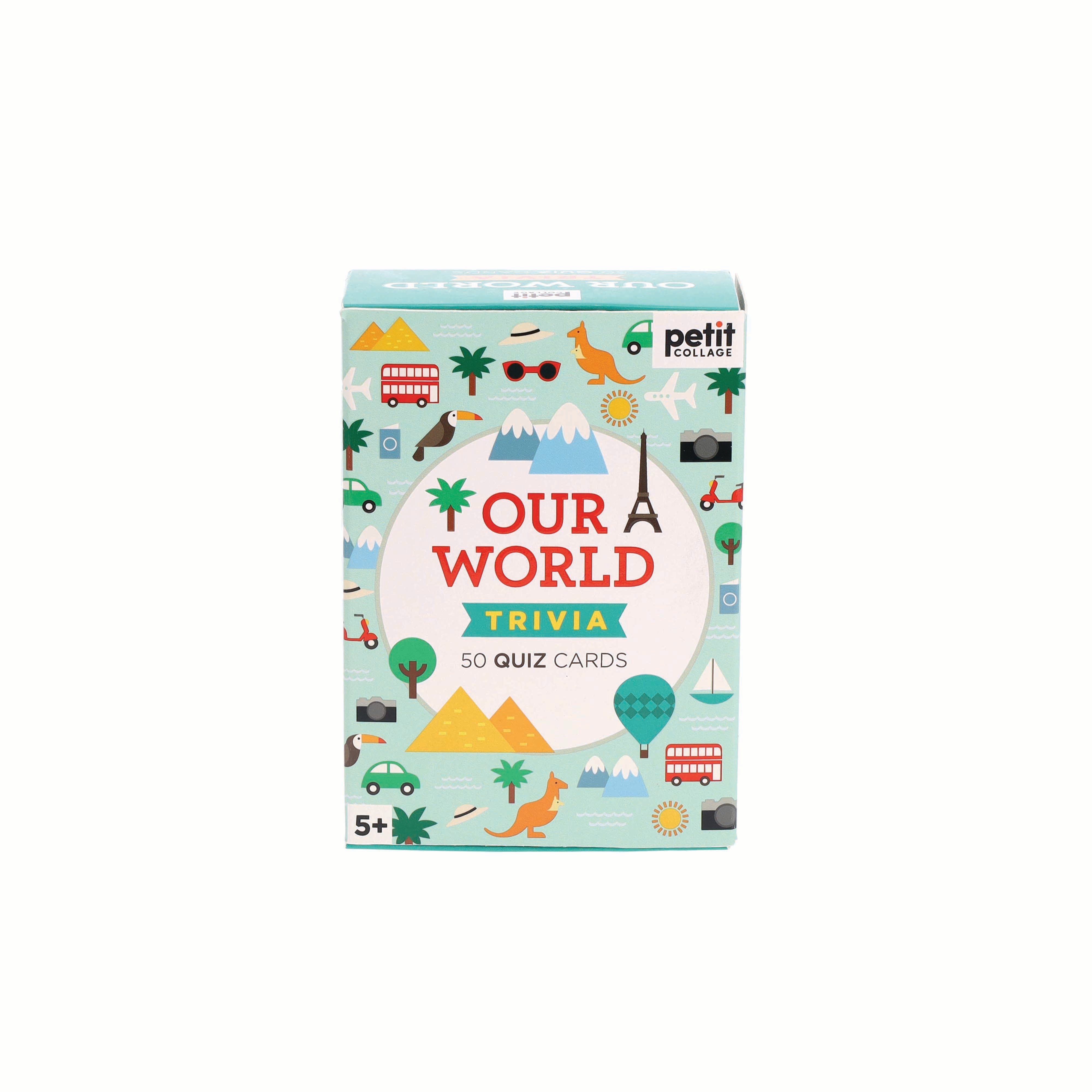 Expand your little globetrotter's knowledge of this great big world with this Our World Trivia Quiz Card set from Petit Collage.