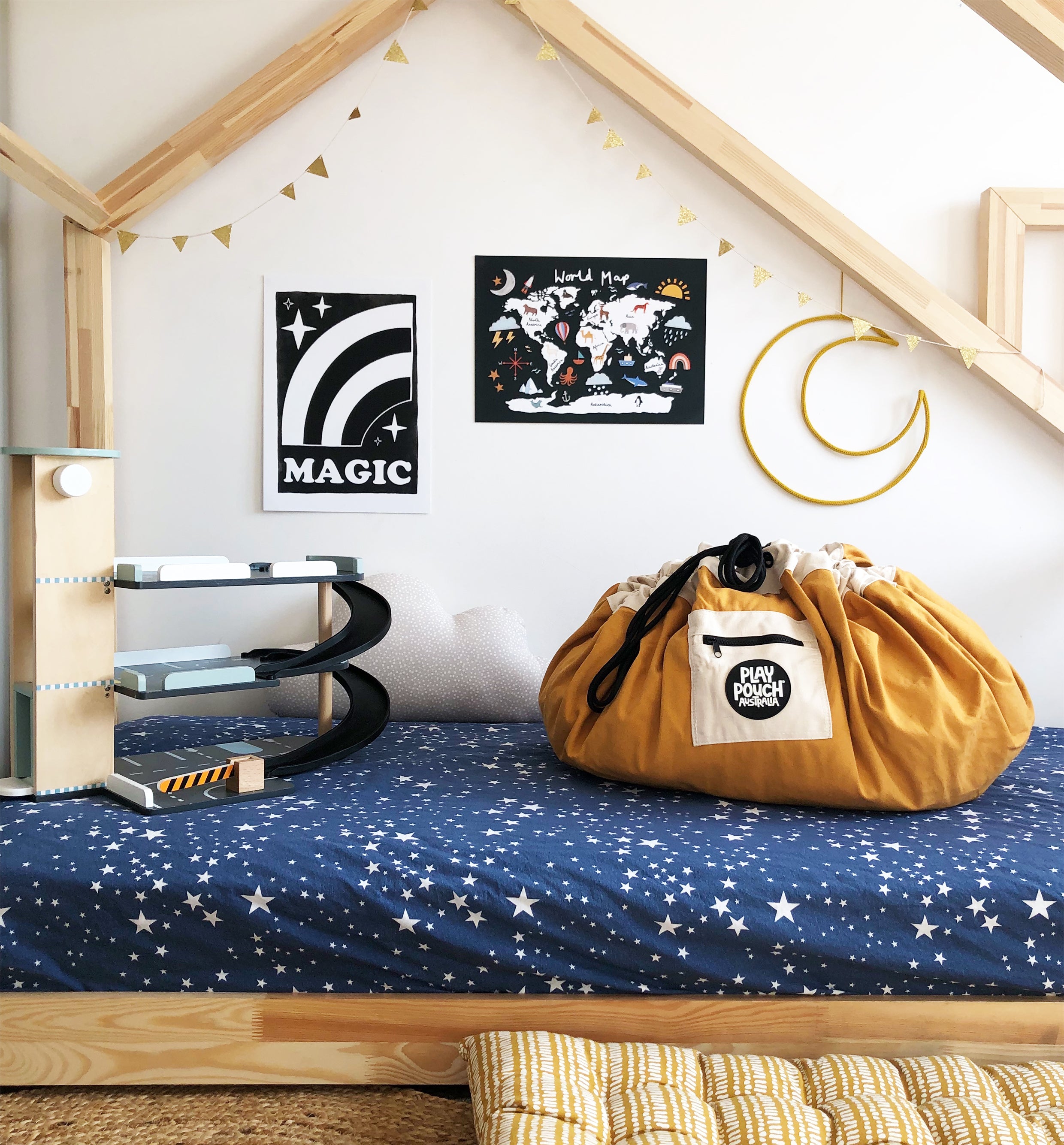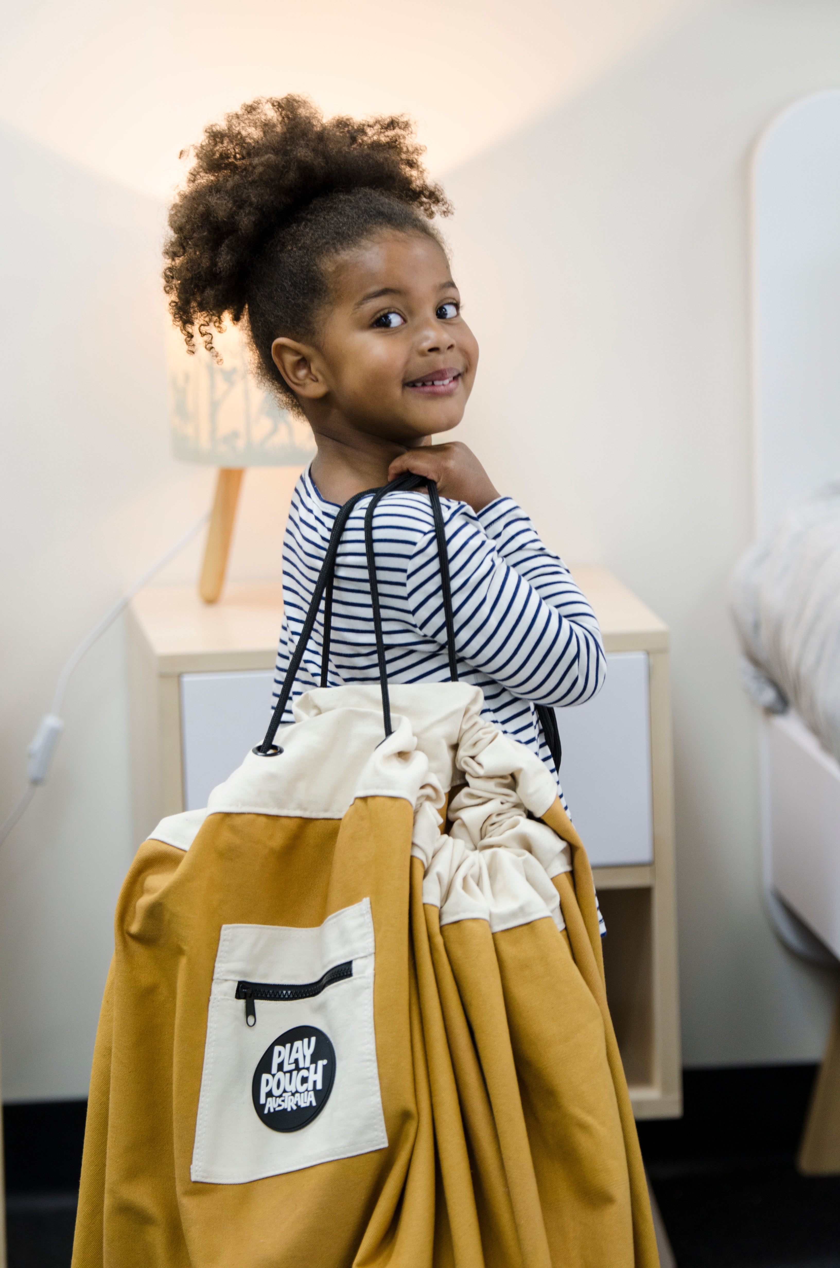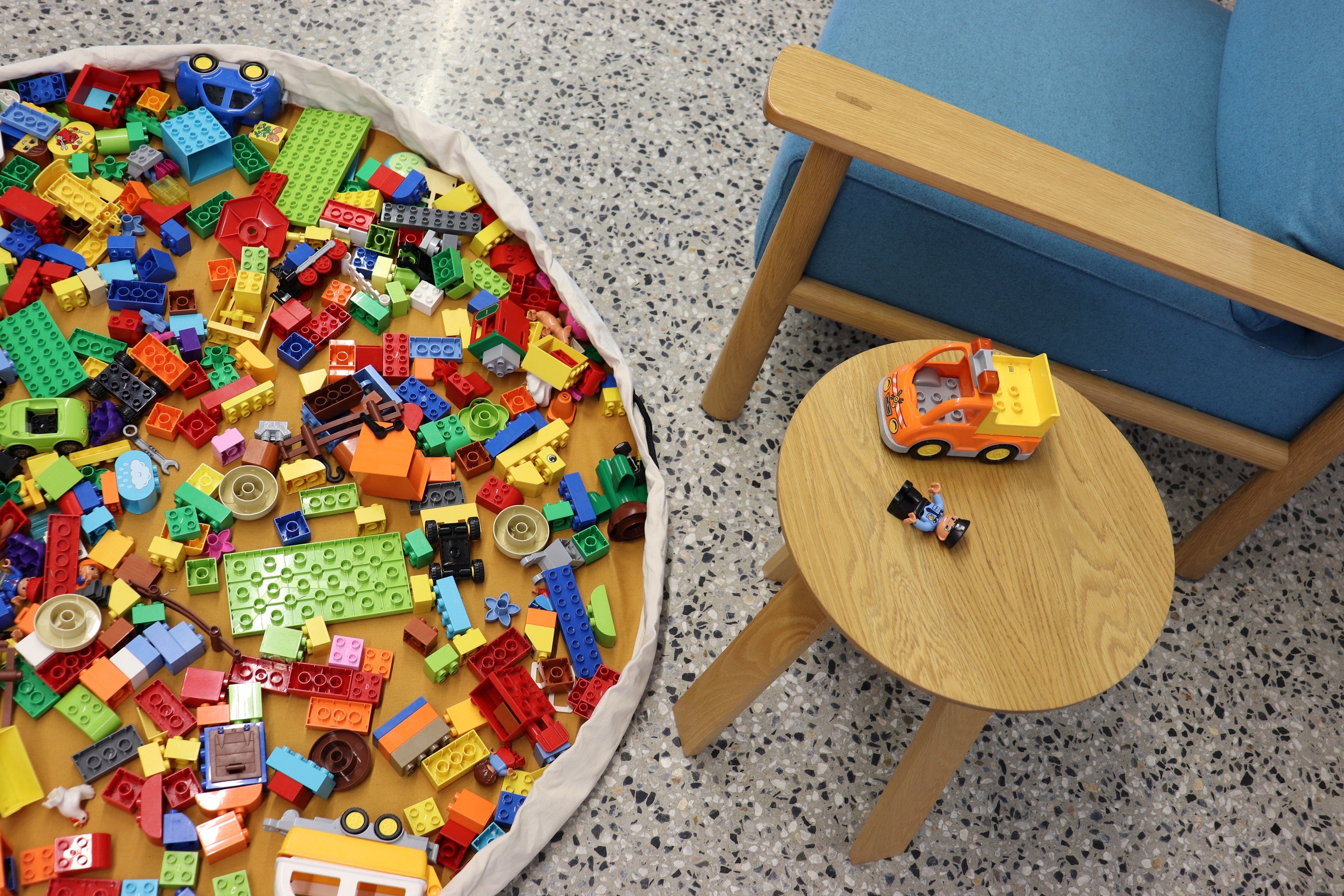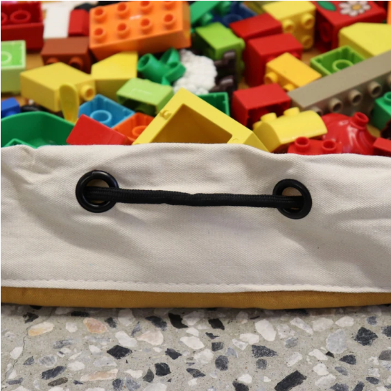 Spread the Play Pouch out for play and all the bits and pieces stay together. When it is time to pack away, just pull on the rope and in a jiffy you've gathered everything neatly into the Play Pouch.