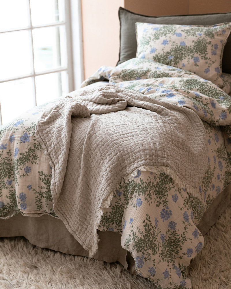 Our bedding is the core of what makes Garbo&Friends, designed for the sweetest of dreams and adorned with our signature patterns. The bedset is made of light and airy cotton muslin, a heavenly soft material with a beautiful texture that gets softer and softer with every wash. This bedset is simple in its design with a clean button closure that lets the material speak for itself.