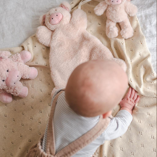 Oink oink! Cheeky little Poppy needs a new home! While hand squeaker toys have limited squeaks, these gorgeous baby rattles will never run out of rattle! And unlike squeakers, there's no toddler strength needed to produce the desired sound: babies will enjoy rattling these little softies as gently as they please. 18cm