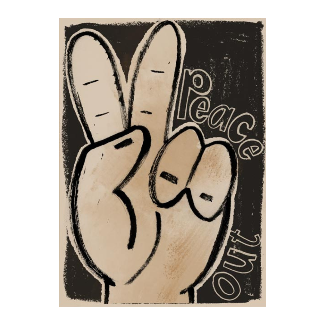 Bring a bold, cool vibe to your child's room with this stylish "Peace Out" hand poster from Studioloco. Featuring a minimalist black-and-white design, this poster showcases the iconic peace sign, adding a touch of coolness and positive energy to any space. Perfect for kids’ rooms, or teen bedrooms, this piece of modern art is a unique way to inspire peace, creativity, and self-expression.