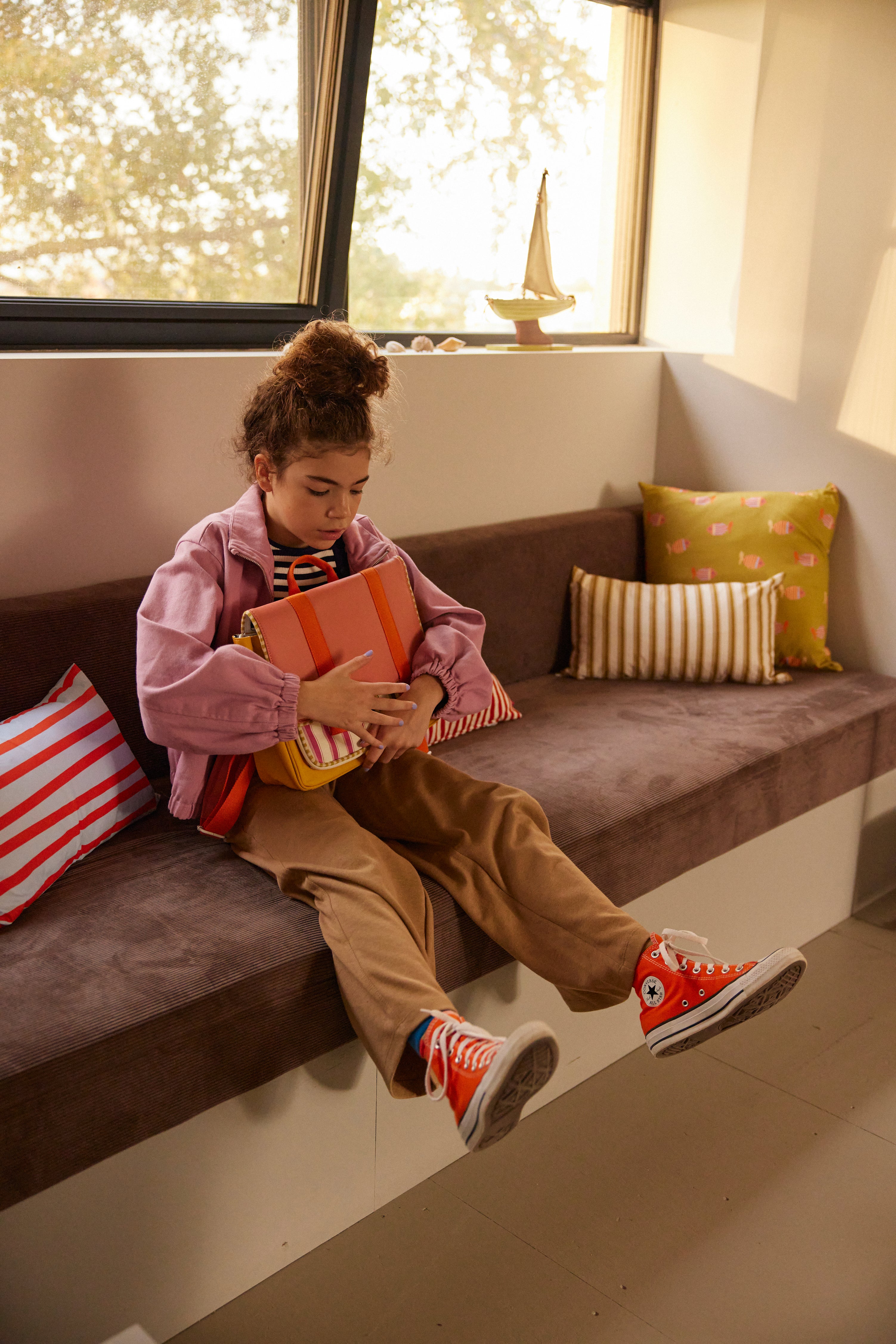 A classic silhouette in a Sticky way. Perfect for bringing all of your things to school. There are two front pockets and inside there is an extra pocket that closes with a zipper.