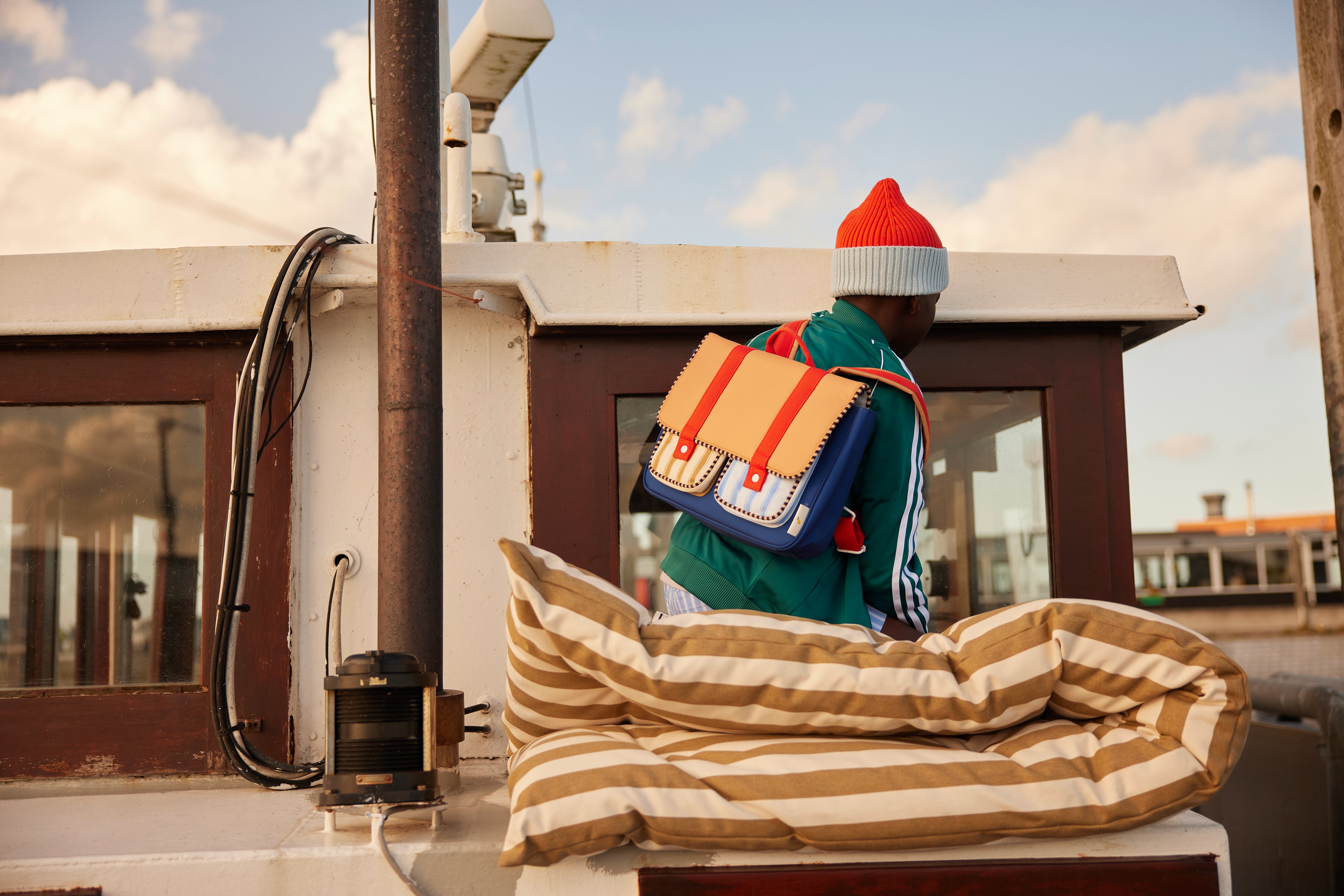 A classic silhouette in a Sticky way. Perfect for bringing all of your things to school. There are two front pockets and inside there is an extra pocket that closes with a zipper.