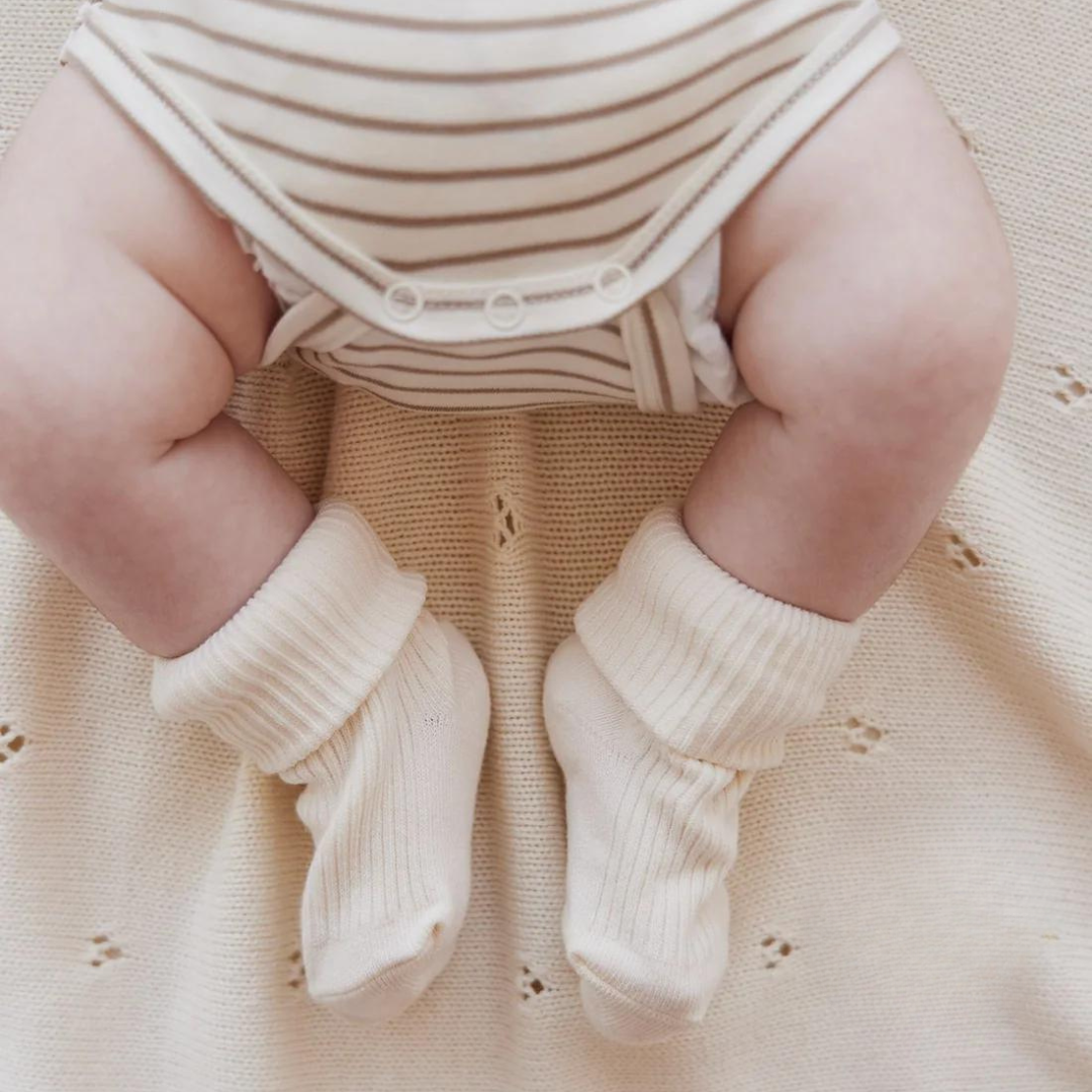 This set of three rib socks for babies features a playful mix of Lilium, Violet Tint, and Milk colors. Made from a soft cotton blend, these socks are perfect for keeping little feet warm and comfortable.