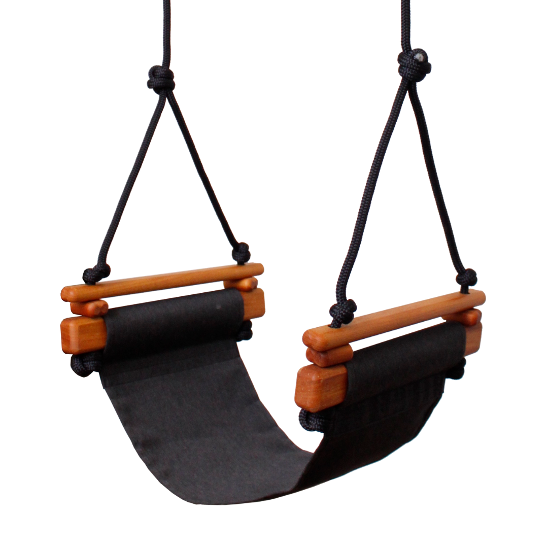 The soft canvas seat hugs the shape of the body when swinging, sitting or lying on the tummy creating a secure fit. Having no hard extrusions without give makes it a much safer swing for kids in the vicinity of the swing than standard swings. The ropes are made from an extremely strong 10 mm high performance yachting braid.