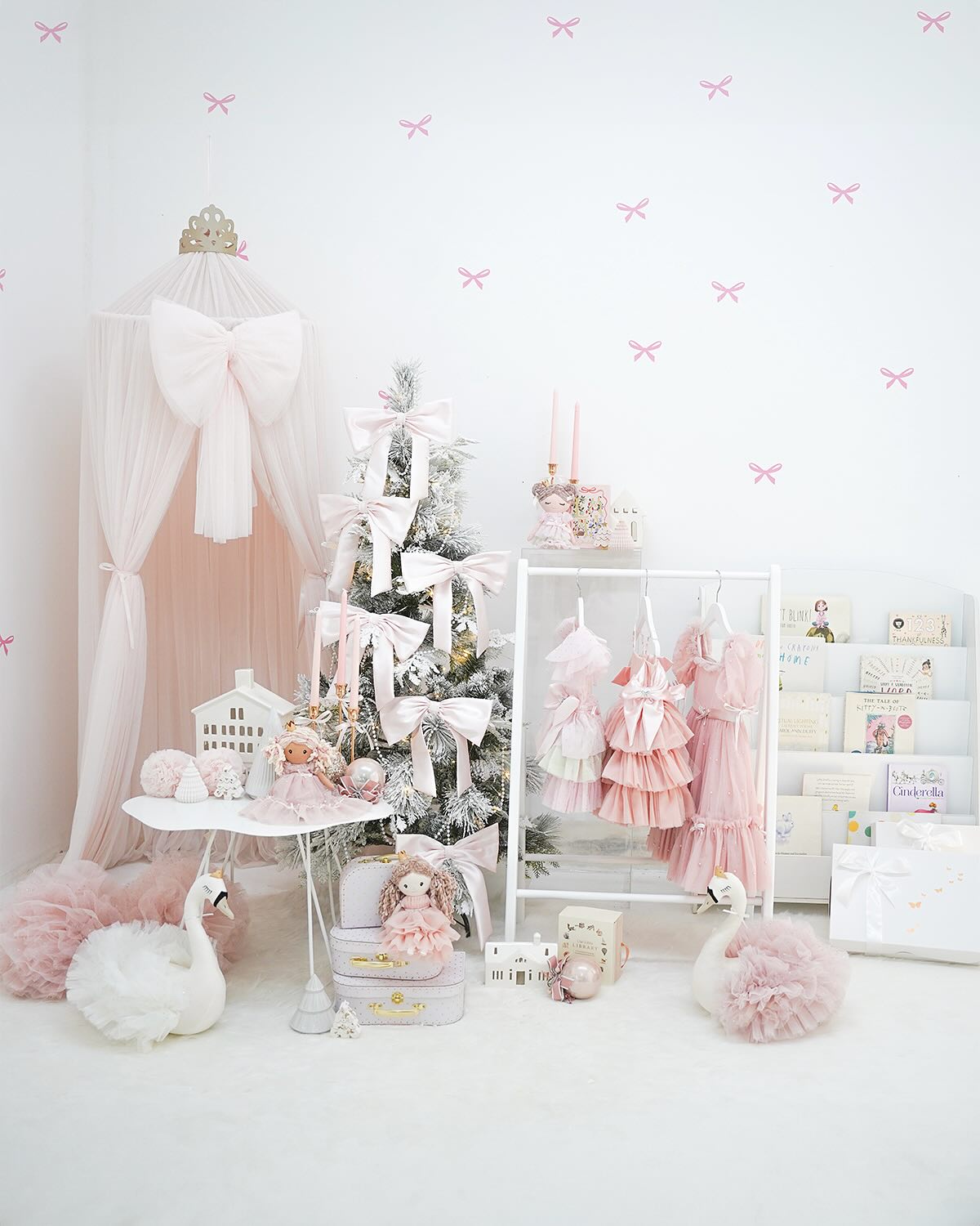 Our Bow Ornament comes in a set of six satin bows in ONE OF two pink perfect shades. Hand-crafted with love using our premium Vegan Textured Satin, each bow features a delicate sheen that catches the light, creating a festive and dreamy look. These bows are ideal for hanging on branches, garlands, wreaths, or your Spinkie Canopies, to add a magical holiday cheer in your spaces. Whether used to complement other ornaments or as a charming focal point, these pink satin bows will bring a touch of whimsy and sophistication to your holiday celebrations.