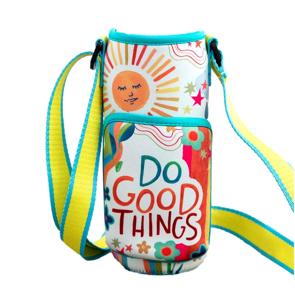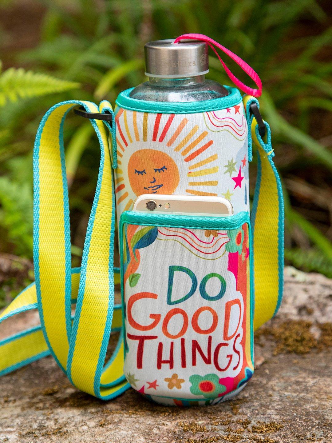 - • Features adjustable shoulder strap and front pocket. Fits most 24oz - 37oz water bottles