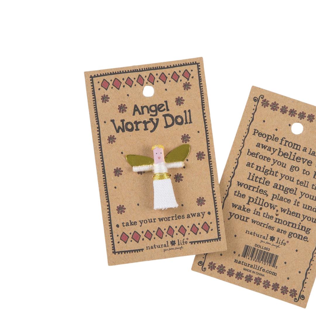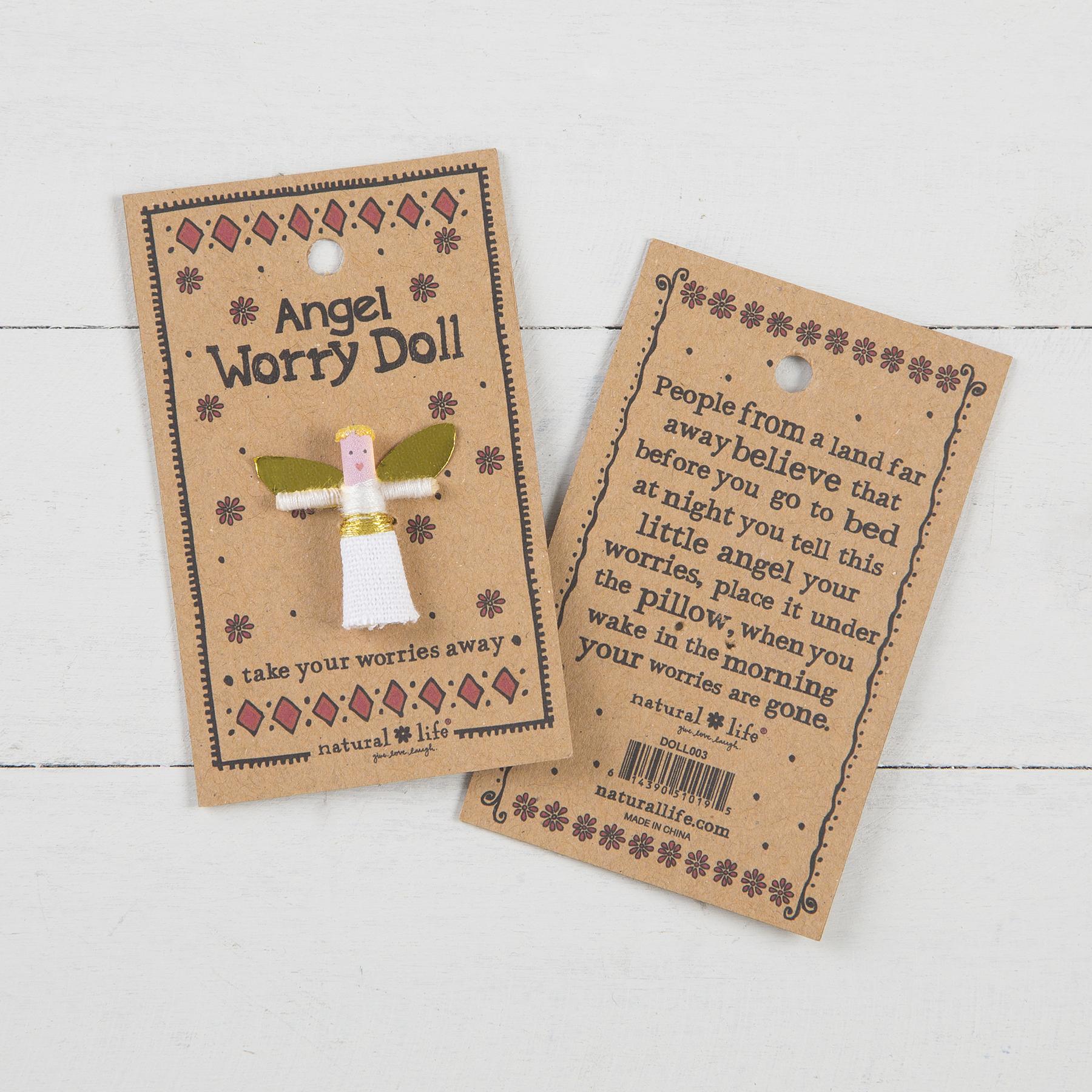 - Tiny wood handmade doll comes on a card explaining folklore of the worry doll.
