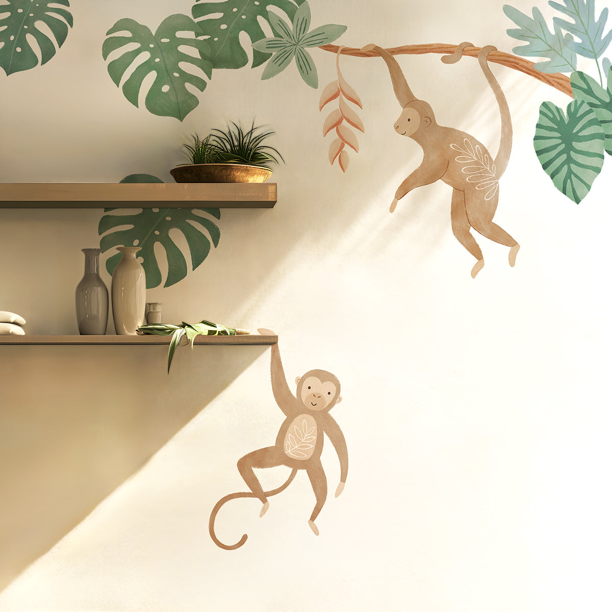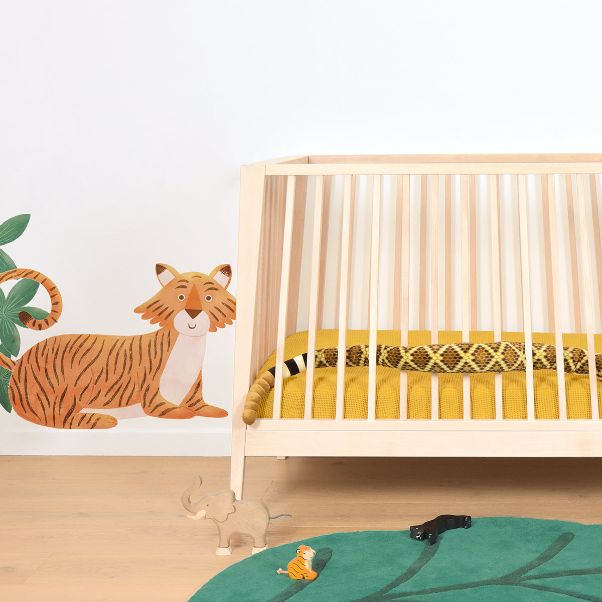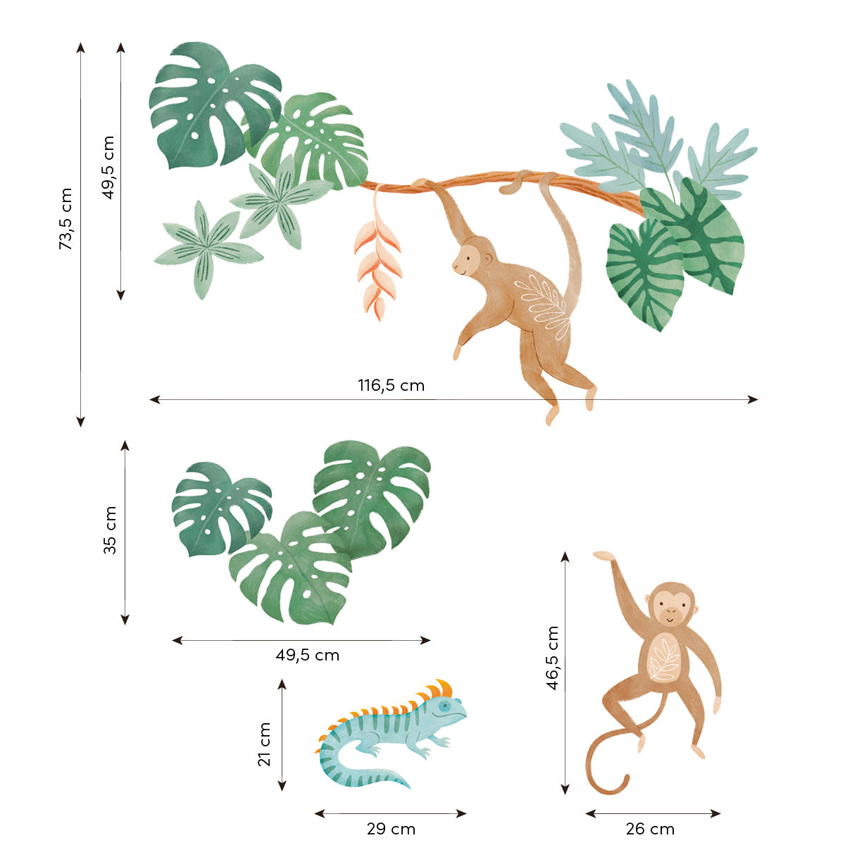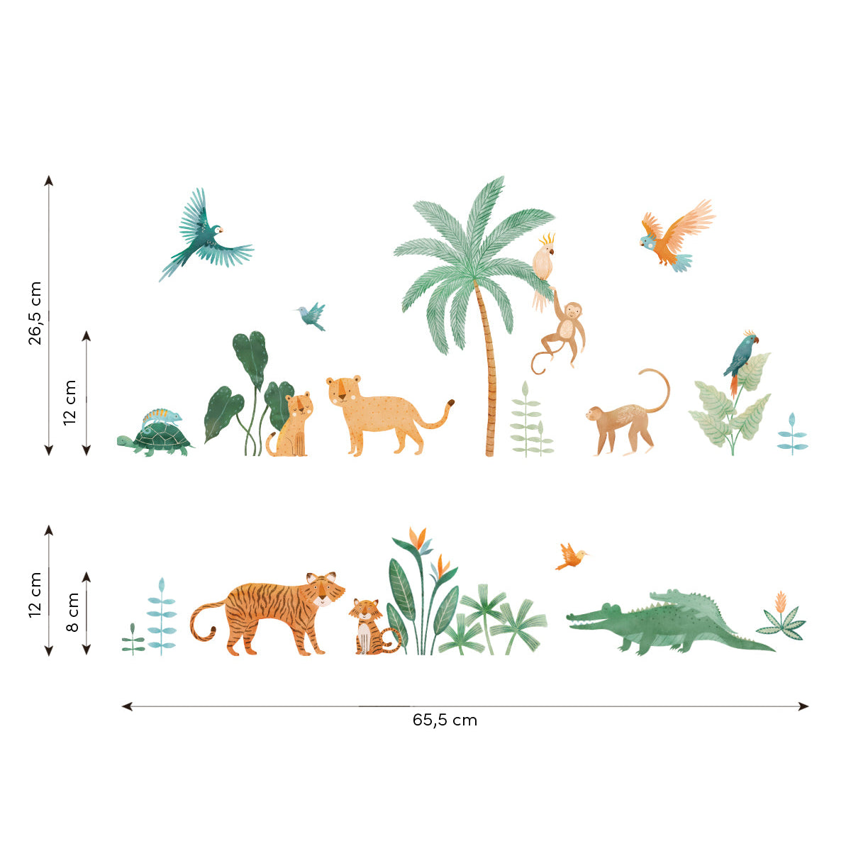 The exotic charm of parrots, crocodile, jaguar, lion, and monkeys right into your child's bedroom, creating a colorful and refreshing tropical haven.
