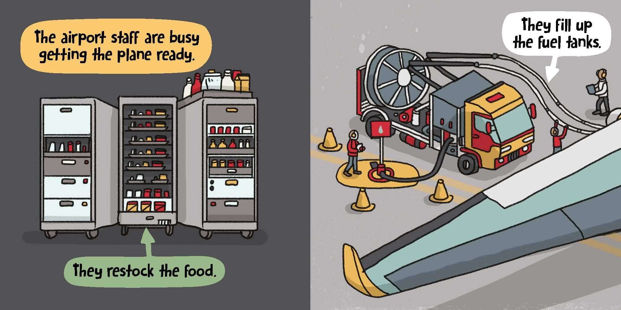 From checking in your bags to walking through the body scanner at security, this book delves into all the goings on at airports, as well as preparing the plane, what happens during the flight and landing safely. Readers will take a closer look inside the aeroplanes themselves, including a peek inside the cockpit!